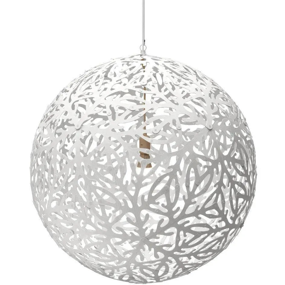 The SOLA light is made from 60 individual pieces, which recall the shape of solar flares, and make intricate shadow patterns that decorate the walls and ceiling. SOLA is part of a series of lights in the design of which Trubridge continued to play with the spherical form – which originated with his first lighting design CORAL, and continued with FLORAL and SOLA. In 2016, Trubridge designed SOLA’s opposite, POLA, with delicate snowflake-shaped component pieces.