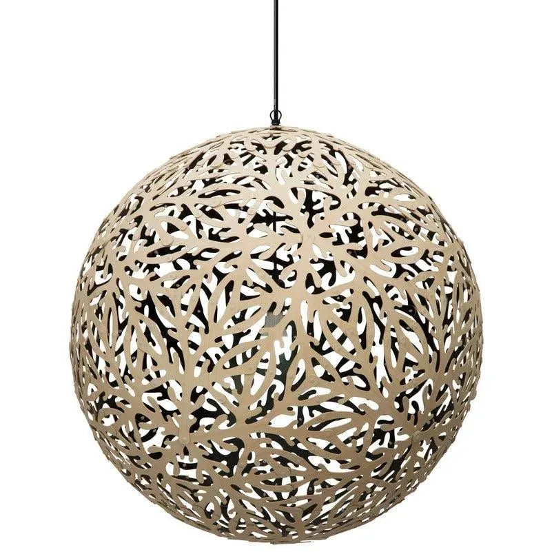 The SOLA light is made from 60 individual pieces, which recall the shape of solar flares, and make intricate shadow patterns that decorate the walls and ceiling. SOLA is part of a series of lights in the design of which Trubridge continued to play with the spherical form – which originated with his first lighting design CORAL, and continued with FLORAL and SOLA. In 2016, Trubridge designed SOLA’s opposite, POLA, with delicate snowflake-shaped component pieces.