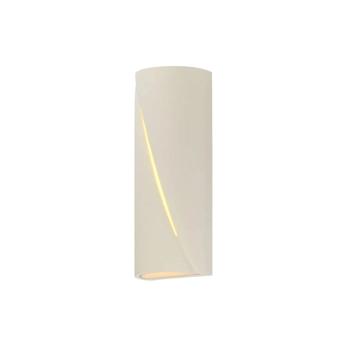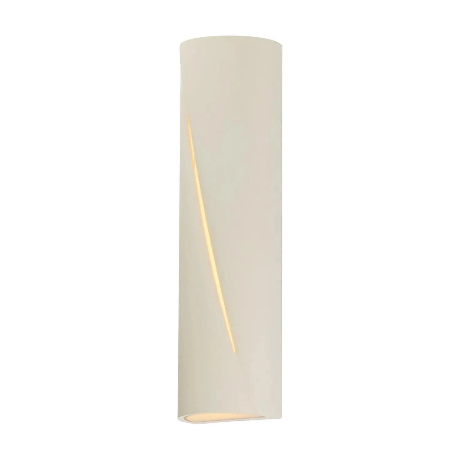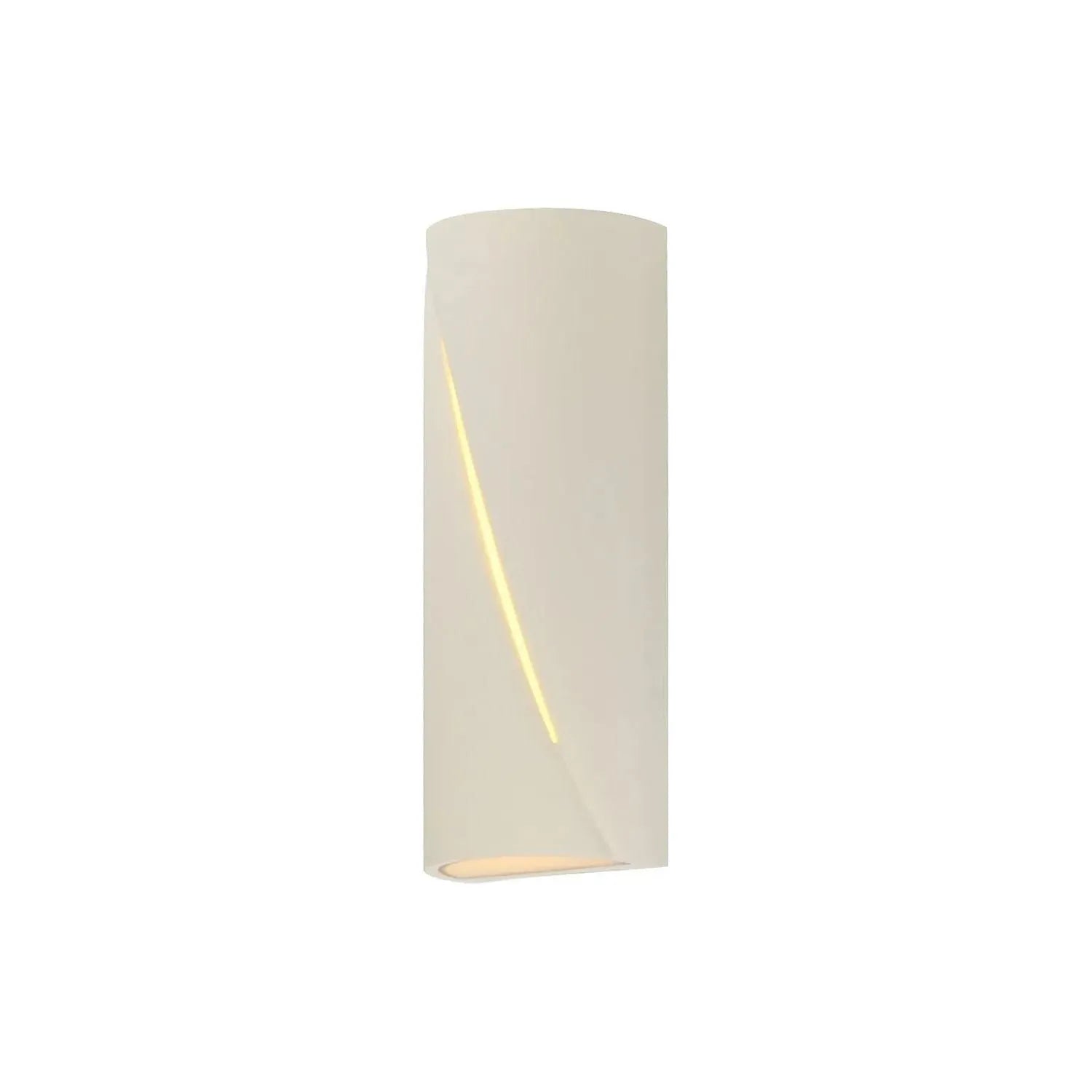 Softly rounding forms are constructed of outdoor-rated concrete molds. Finished in Greystone or Chalky White, these sconces are both playful and sophisticated. A diagonal reveal along the fixture's body emits light while also casting light above and below the fixture.