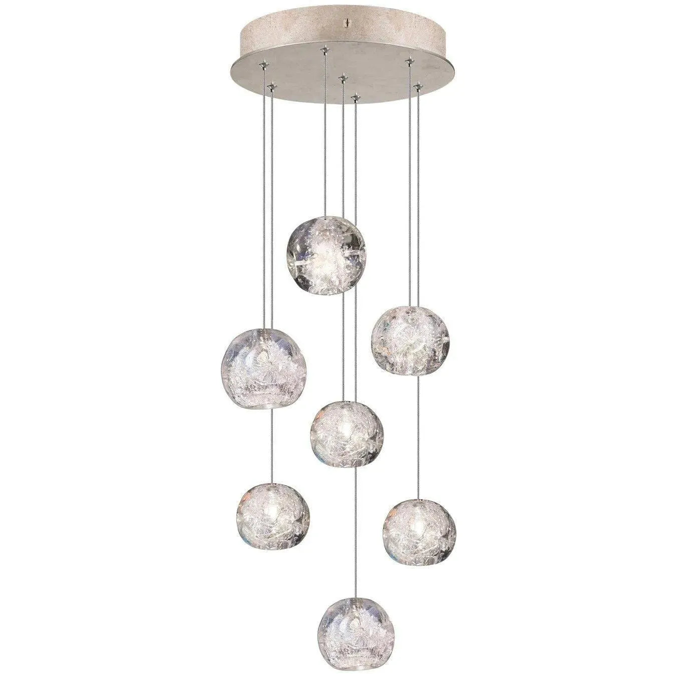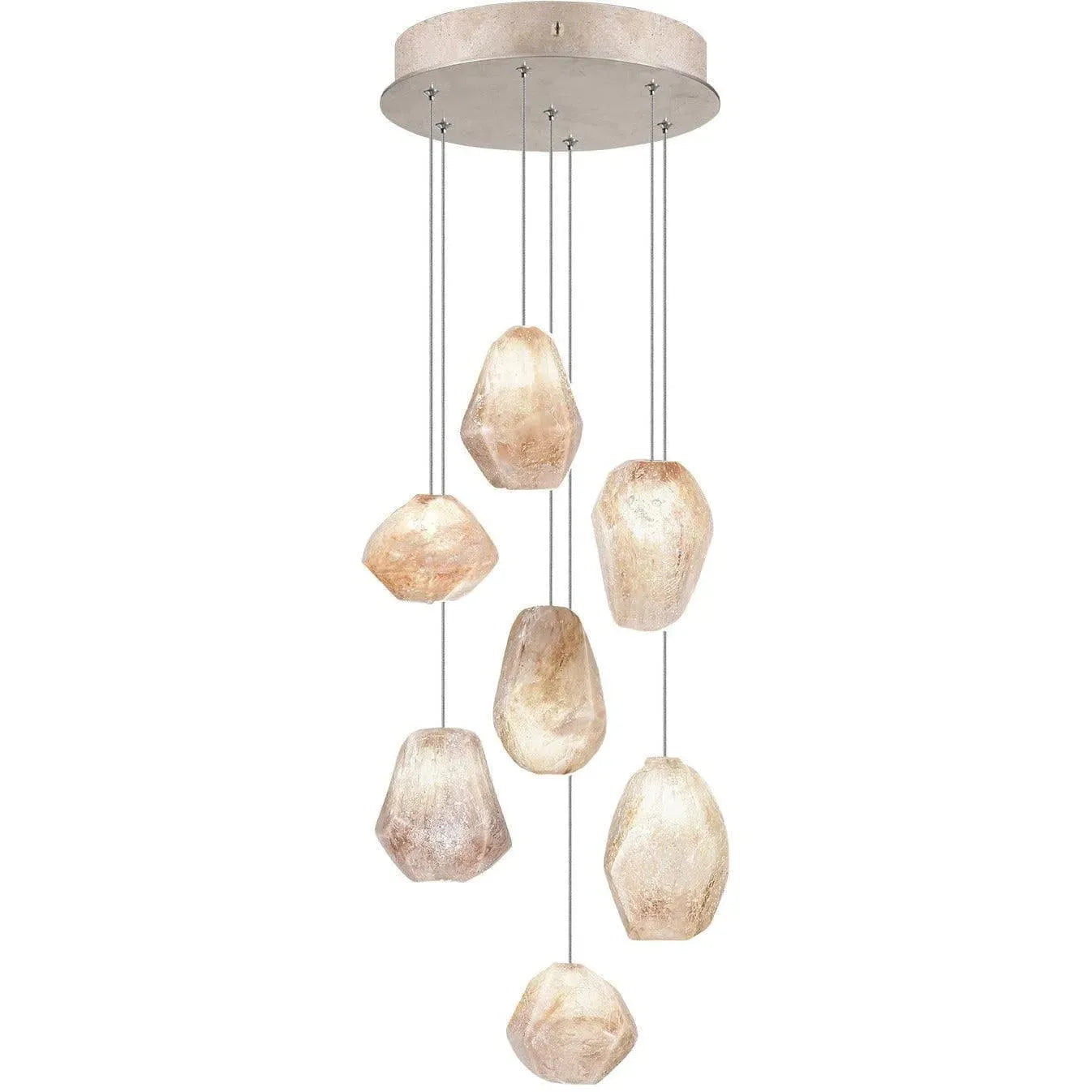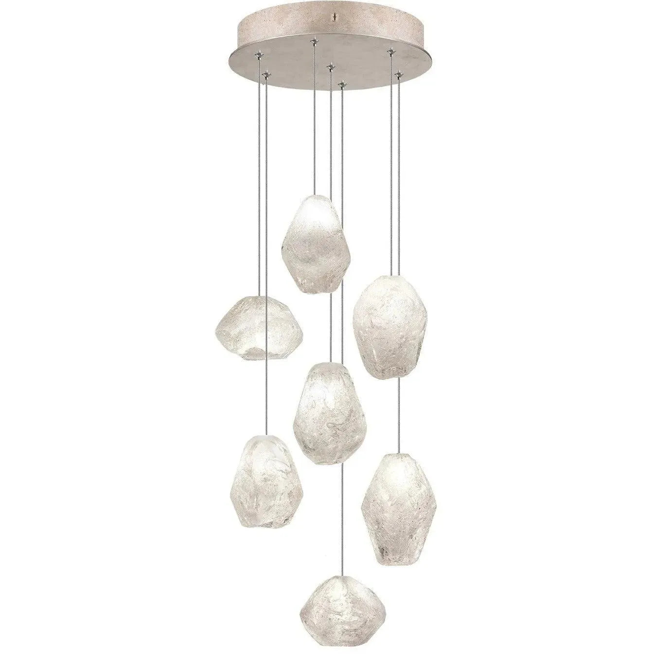 Natural Inspirations 14-Inch Seven Light Pendant from Fine Art Handcrafted Lighting is a sculptural statement that translates organic form into refined illumination. Seven clustered crystal‑like clusters suspend from a clean round canopy, creating depth, sparkle, and a floating composition ideal for foyers, stairwells, and dining volumes.