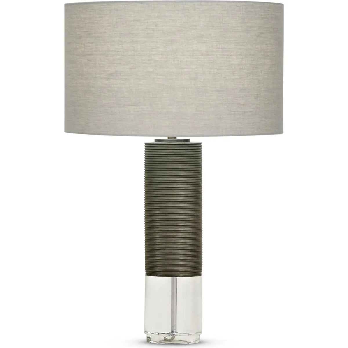 Contemporary meets antique in this stylish — and petite — table lamp. Pairing a clear column with a ribbed bronze detail makes for a versatile piece of lighting perfect for modern, farmhouse or even coastal interiors. Available in a larger-sized table lamp, as well as with a coordinating floor lamp.