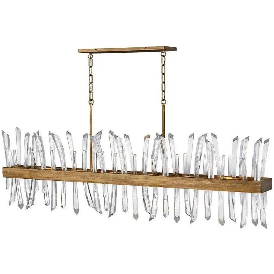 A compelling design that captivates from any angle, the Revel family gleams with sophistication. Luxurious crystal rods are honed into unexpected asymmetrical formations to produce an organic elegance that is both raw and refined. Revel's linear and circular chandeliers are available in both Burnished Gold and rich Black finish options.