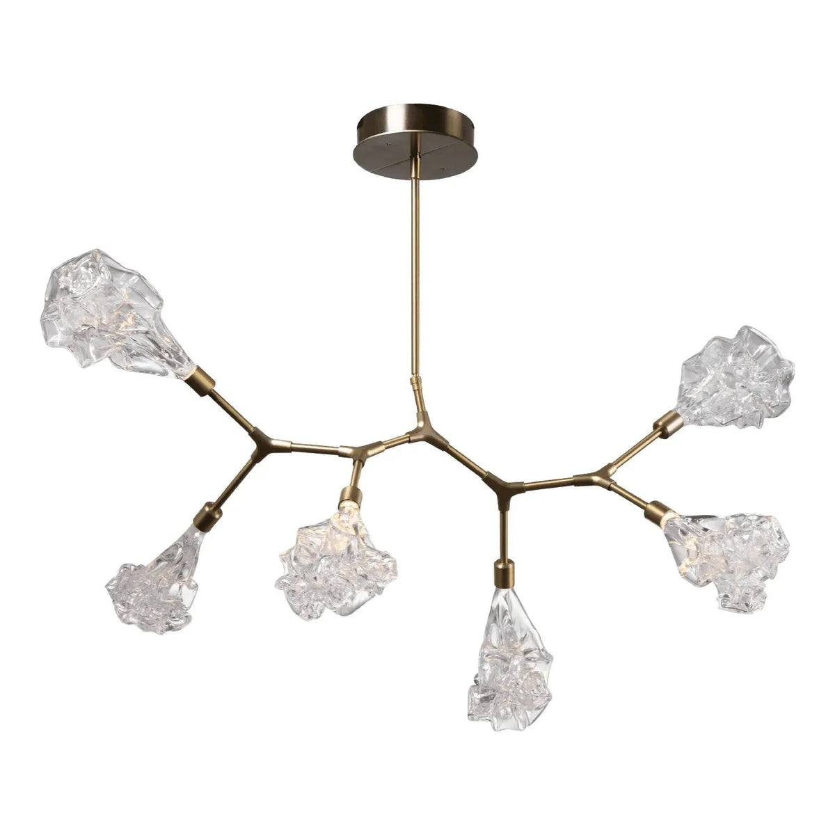 Undulant ‘blossoms’ of LED-lit hand blown glass nod to an organic aesthetic that exudes casual sophistication in this collection of hand blown glass light fixtures. The look is soft, relaxed and surprisingly unique. Each Blossom glass shade is a one-of-a-kind artisan creation reflecting the combined talents of Hammerton’s metal and glass fabrication teams.