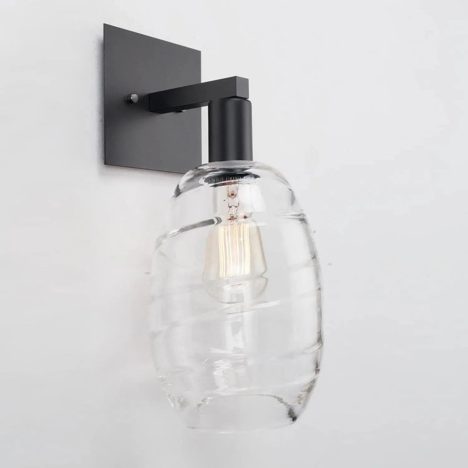 Expertly crafted by Hammerton artisans, our optic blown glass shades create a magical dance of light and color, particularly when paired with clear or vintage bulbs. This simple yet elegant sconce design elevates the visual intrigue of our Ellisse optic blown glass.