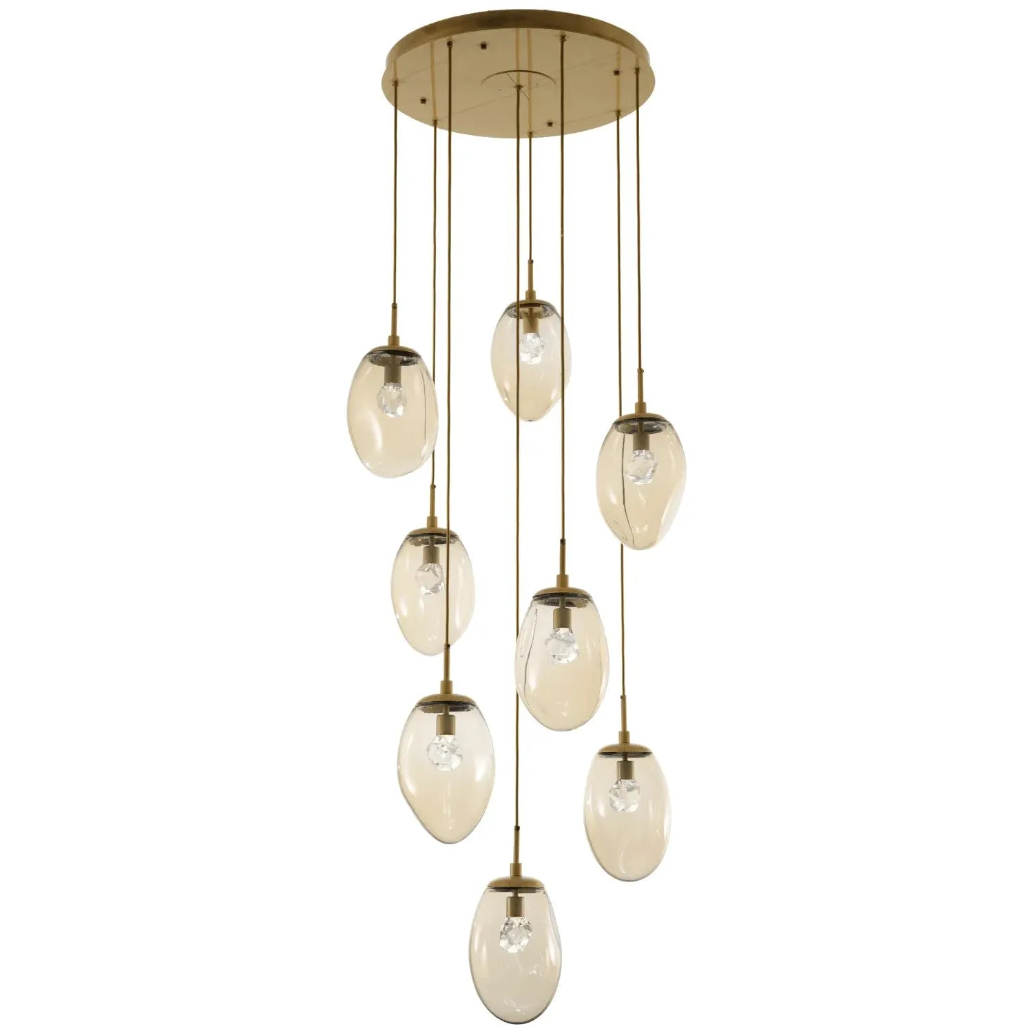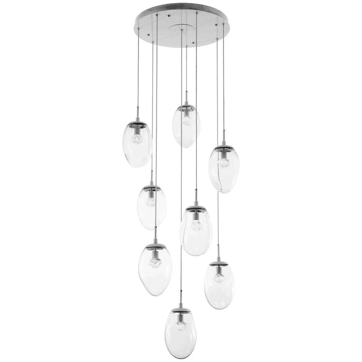 Nebula includes three blown glass pendant shapes and three cast glass diffuser styles, so you can pair your favorite pendant with your preferred diffuser. Pendants are offered in four blown glass colors and four opaque finishes, and can be ordered singly or grouped in several multi-port chandelier configurations.