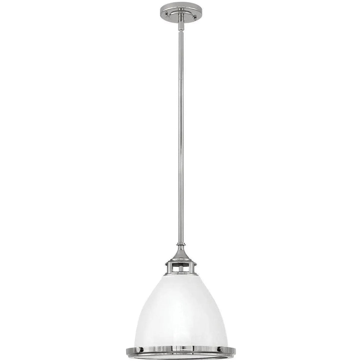 Amelia's classic pendant design reinvents vintage details with a cast glass fitter, cast metal trim ring and ornamental clasps. Bold finish options glow with retro inspiration.