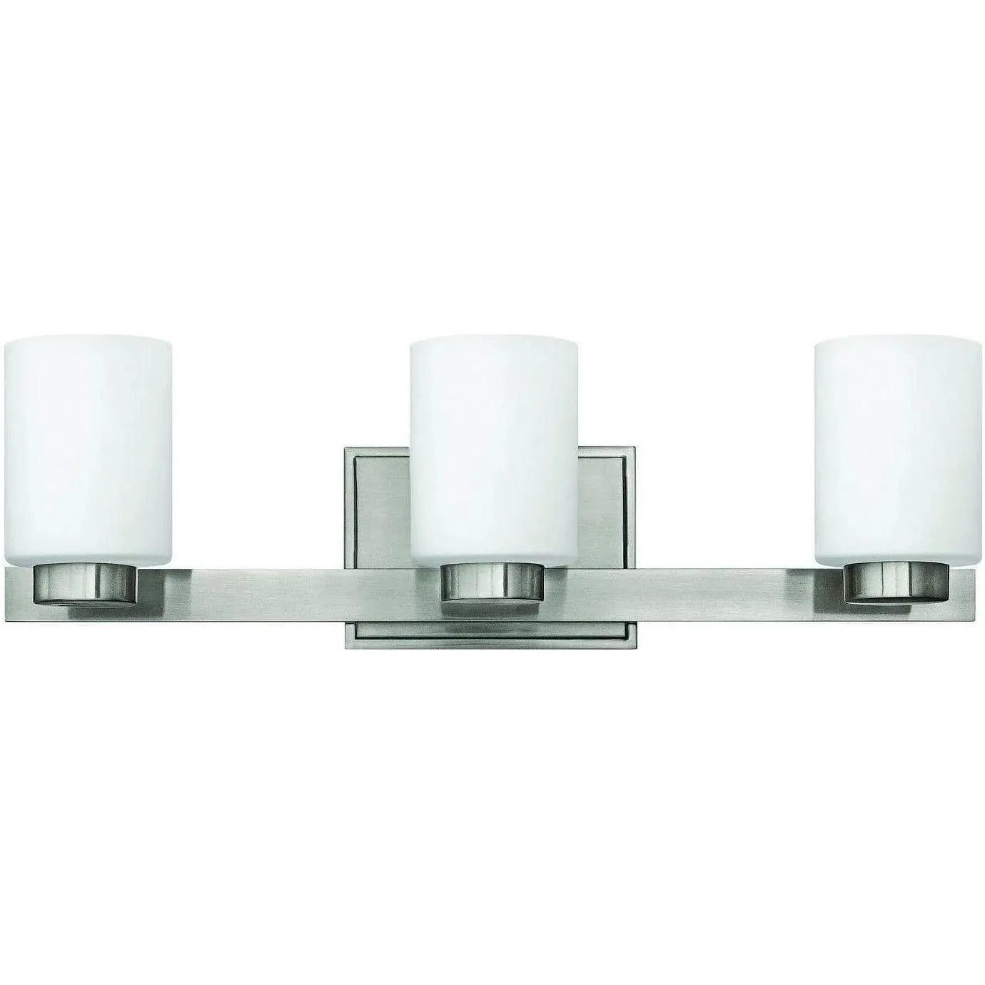 Finish: Brushed Nickel Glass/Shade: White Etched Material: Metal Dimensions: 21.50" W x 6.25" H Weight: 5 lbs. Extension: 5.50" Canopy Size: 6.5" x 4.5" Bulbs: 3 x G-9 G-9 60W, Dimmable Collection: Miley Spec Sheet:Download Instructions:Download