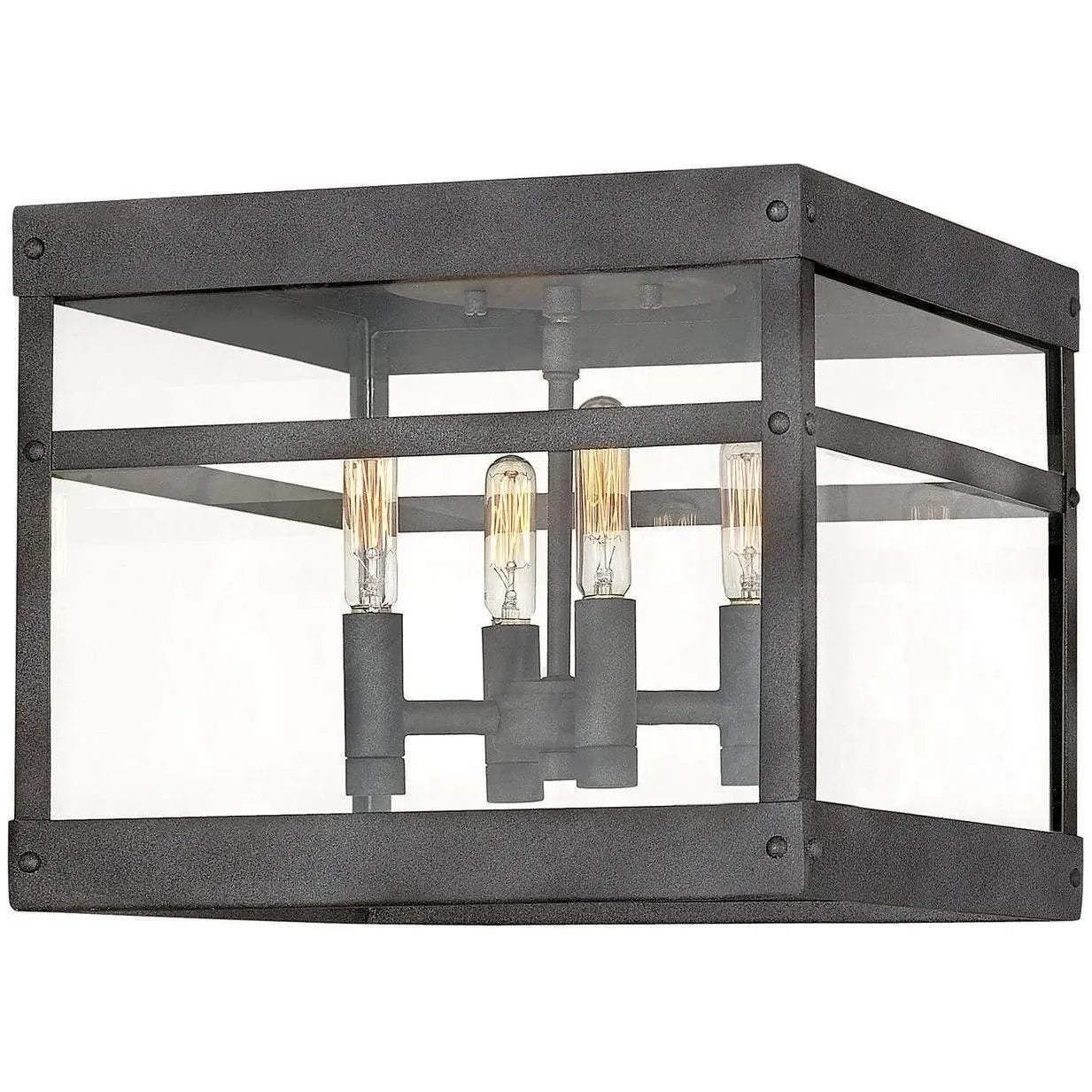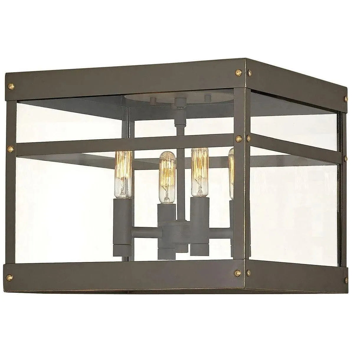Finish: Aged Zinc Glass/Shade: Clear Material: Aluminum Dimensions: 12" W x 12" L x 12" H Weight: 7.70 lbs. Bulbs: 4 x Candelabra Candelabra 60W, Dimmable Collection: Porter Spec Sheet:Download Instructions:Download