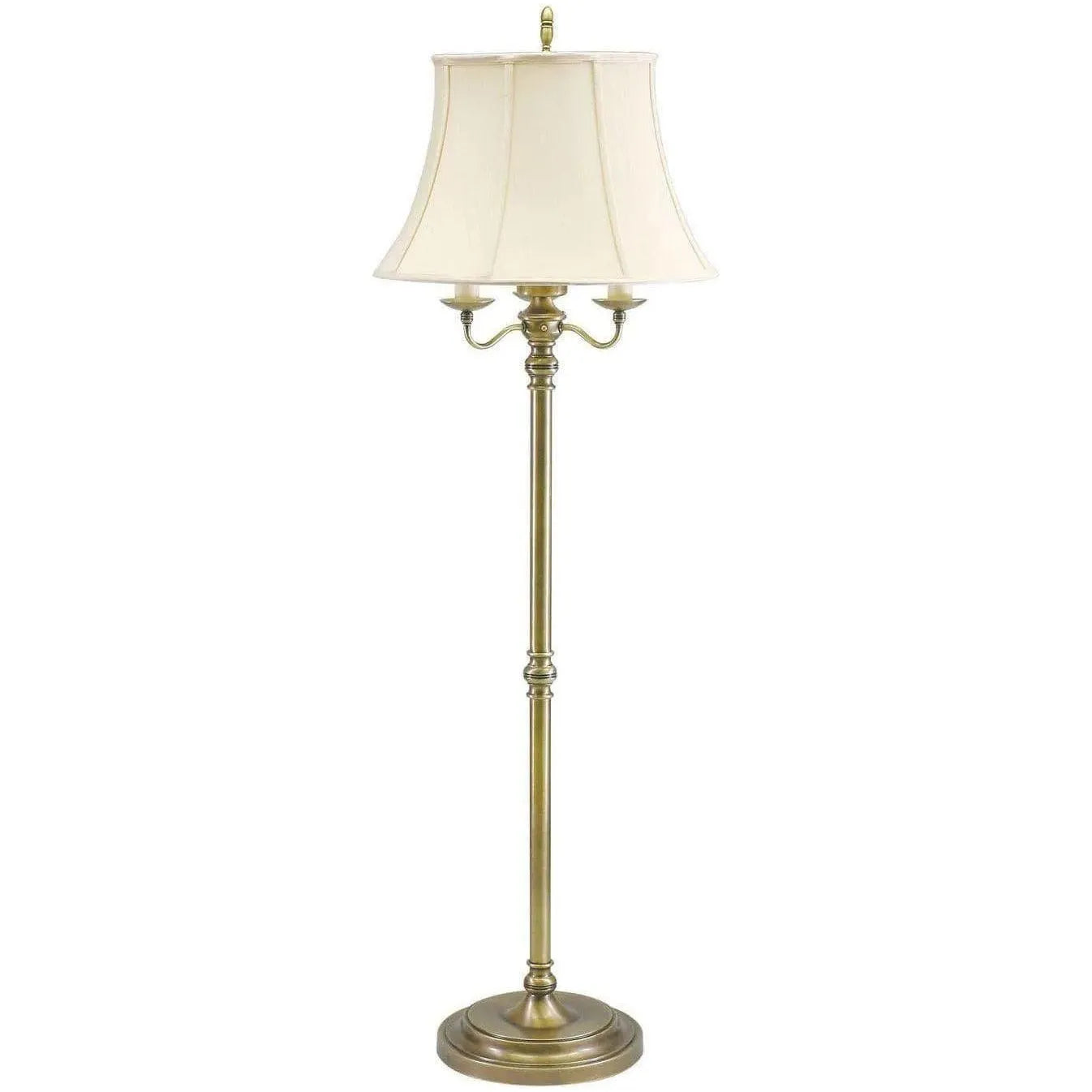 House of Troy presents the Newport Four Light Floor Lamp — a refined floor lamp that balances classical proportion with practical illumination for curated interiors. Its slender, turned metal column and stepped circular base read as deliberate craftsmanship, while the softback linen-style shade provides even, flattering light ideal for living rooms or study corners.
