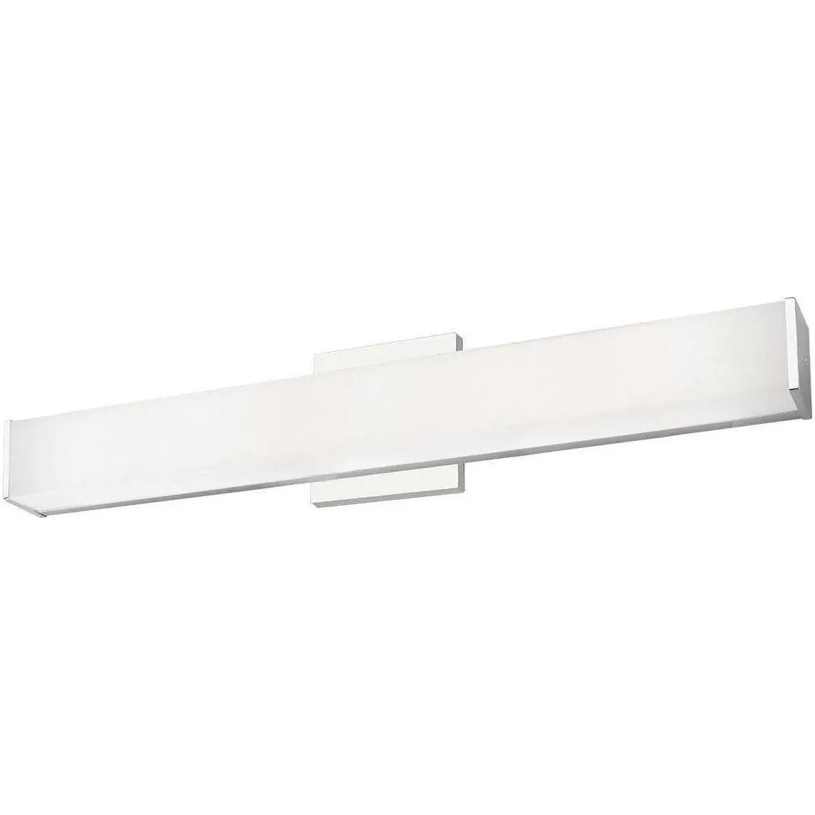 Rectangular white acrylic diffuser with electroplated formed steel detail