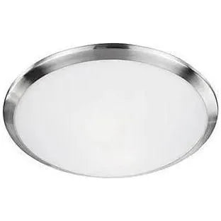 Single lamp flush mount ceiling fixture with white opal glass and brushed nickel metal finish trim.