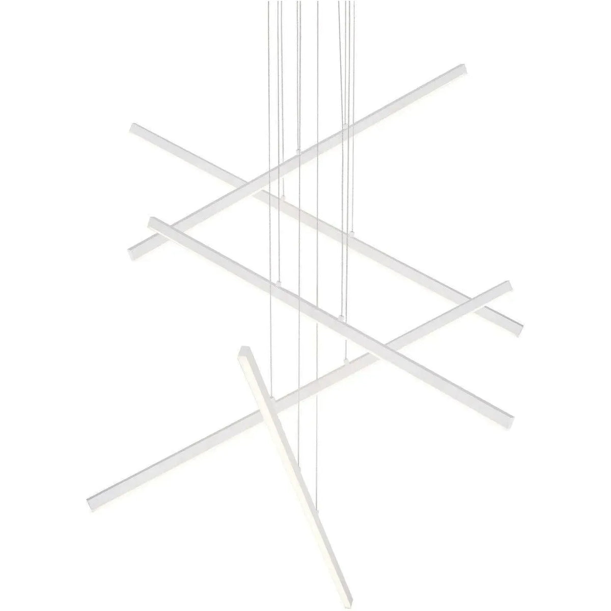 The linear lights can be configured at different heights and angles to create distinct sculptural orientations