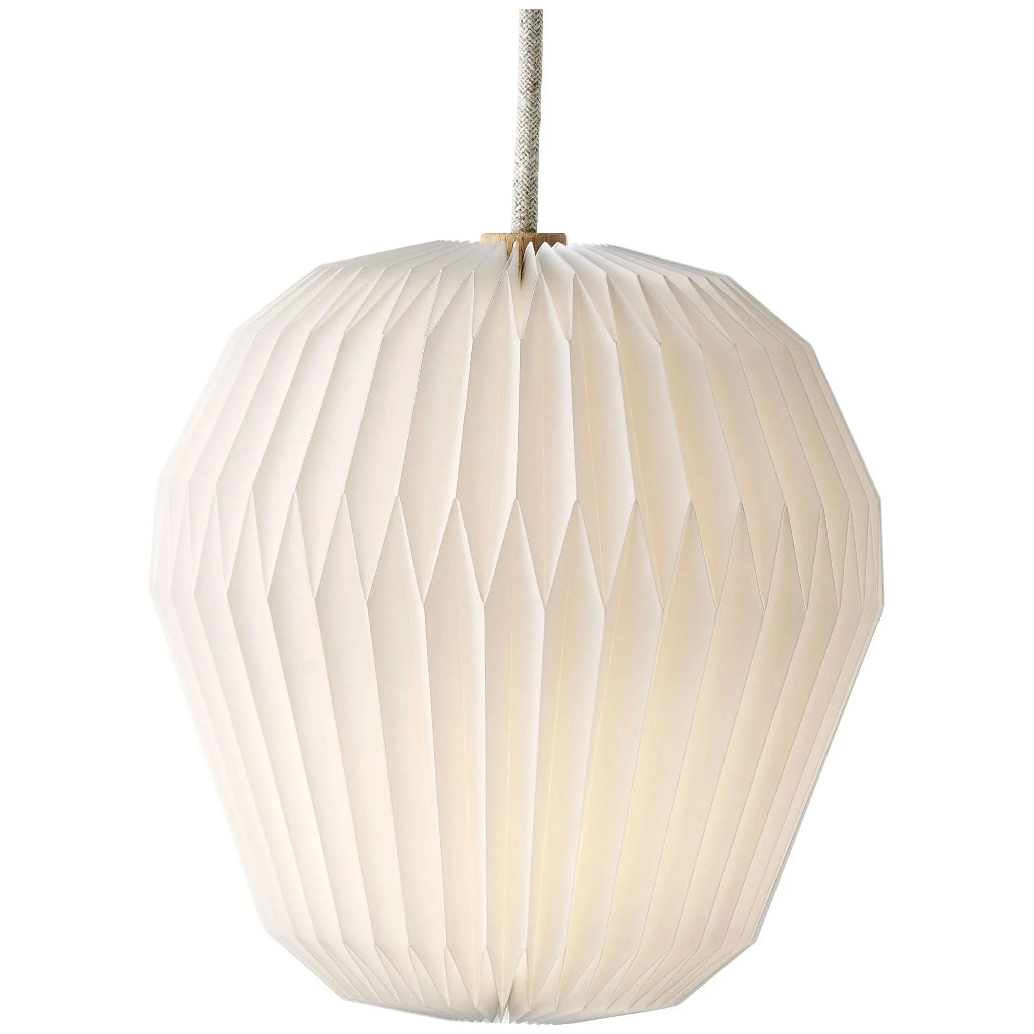 The Bouquet Pendant hangs beautifully in any home and gives off a warm ambient light creating a cozy glow. The shade, available in PVC or Paper, has been delicately folded in a shape reminiscent of a tulip. Light Oak hardware connects the shade to the cord. Includes 5.5 inch round white painted metal canopy and 60 inch of braided linen cord followed by 120 inch of white PVC cord.