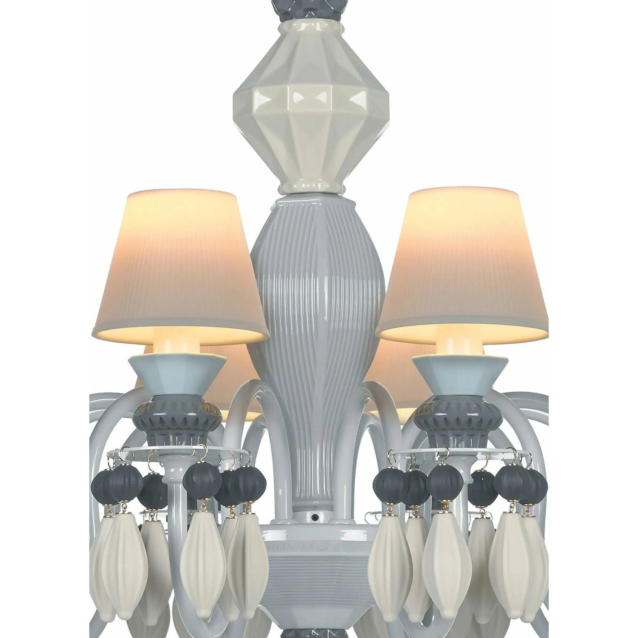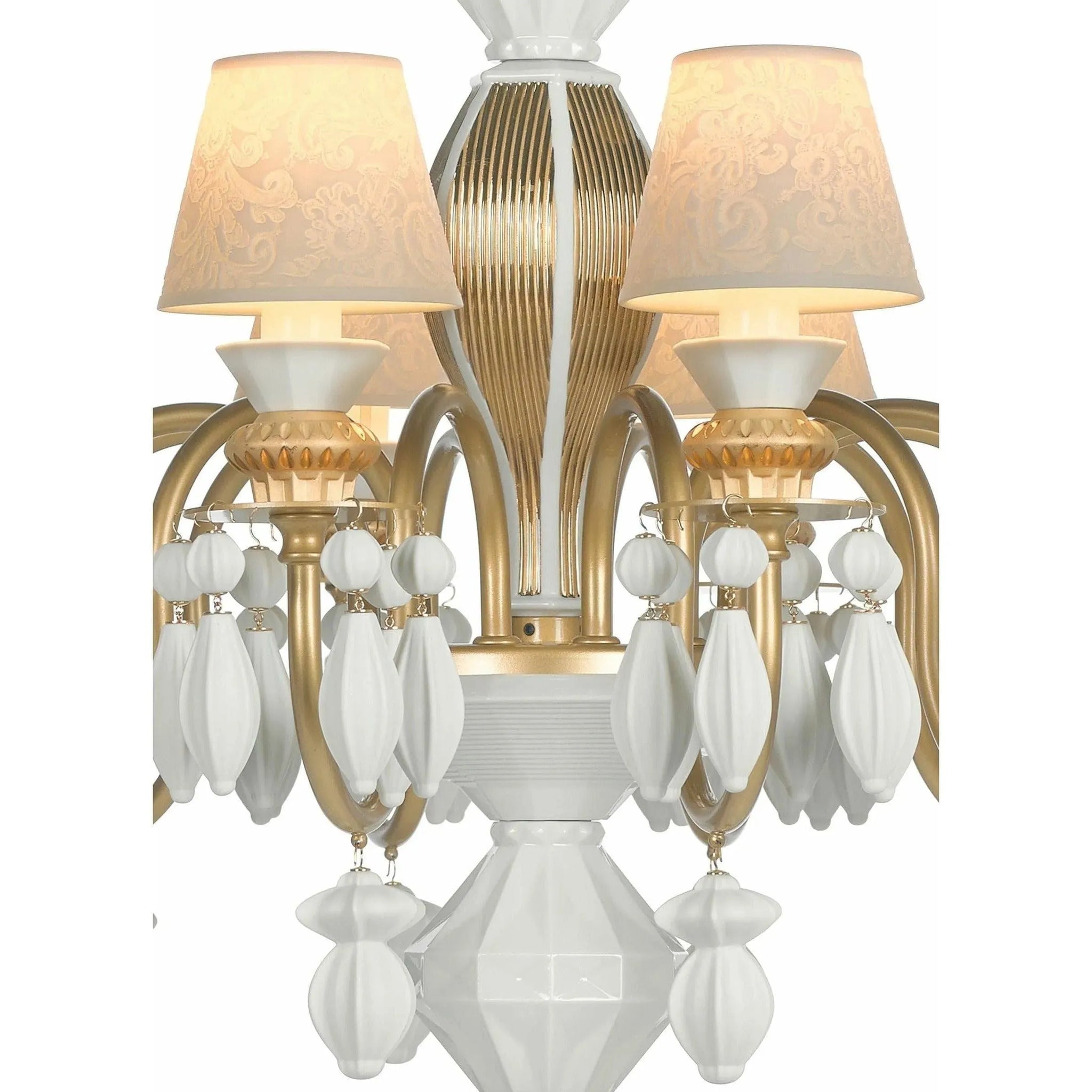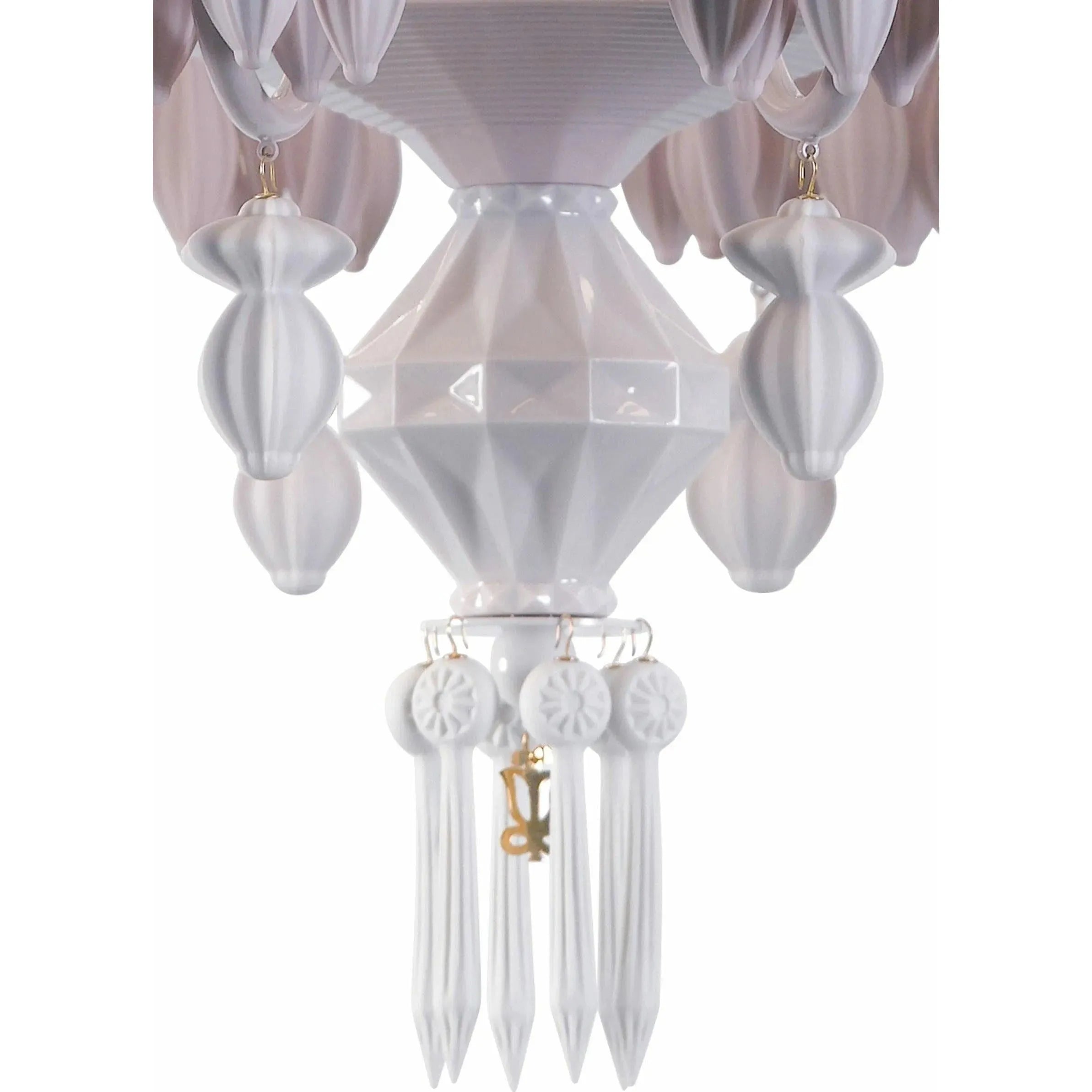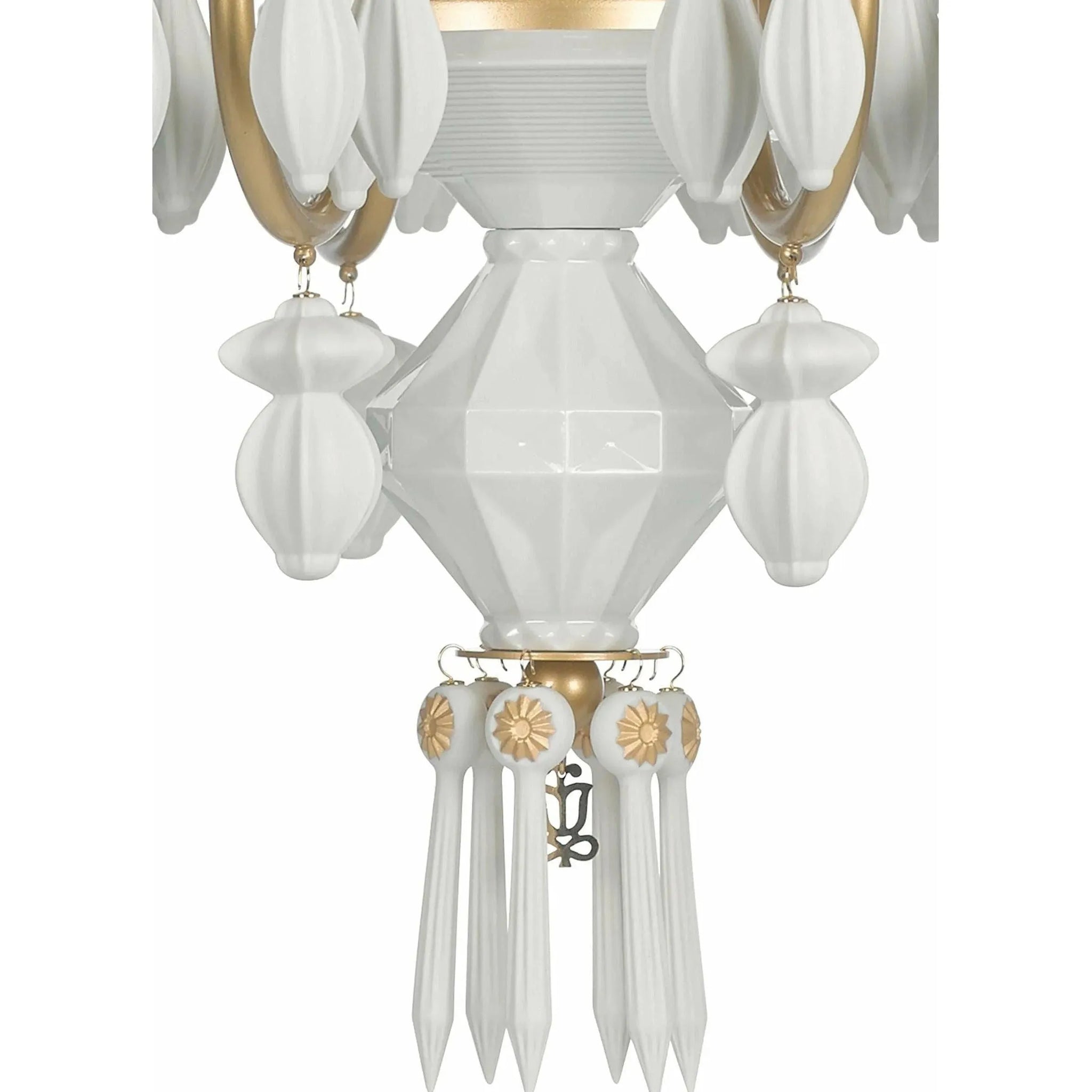 Chandelier entirely made of porcelain. Made in different finishes to match all decorative ambiences. Not very heavy to simplify its installation. Bespoke measures available under request