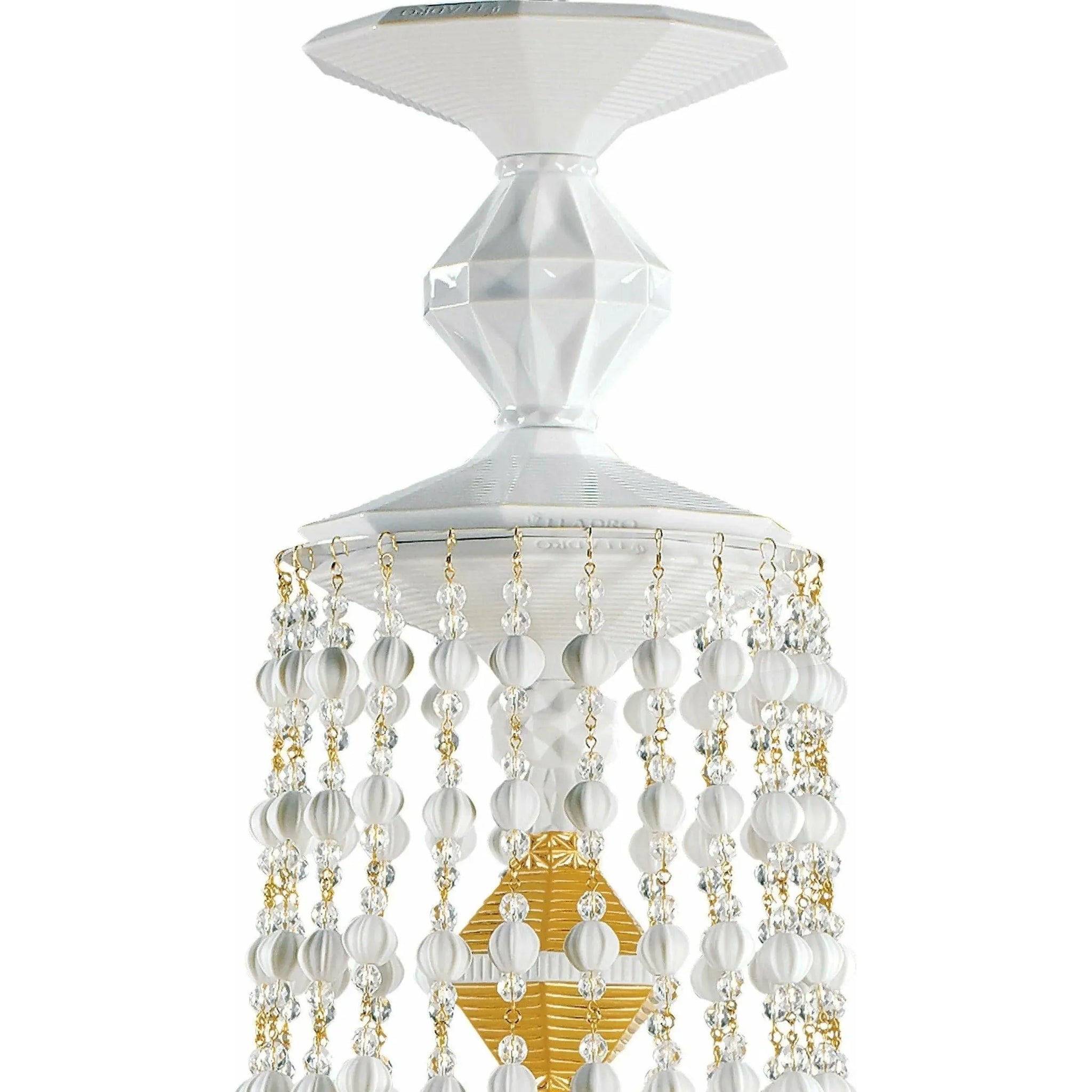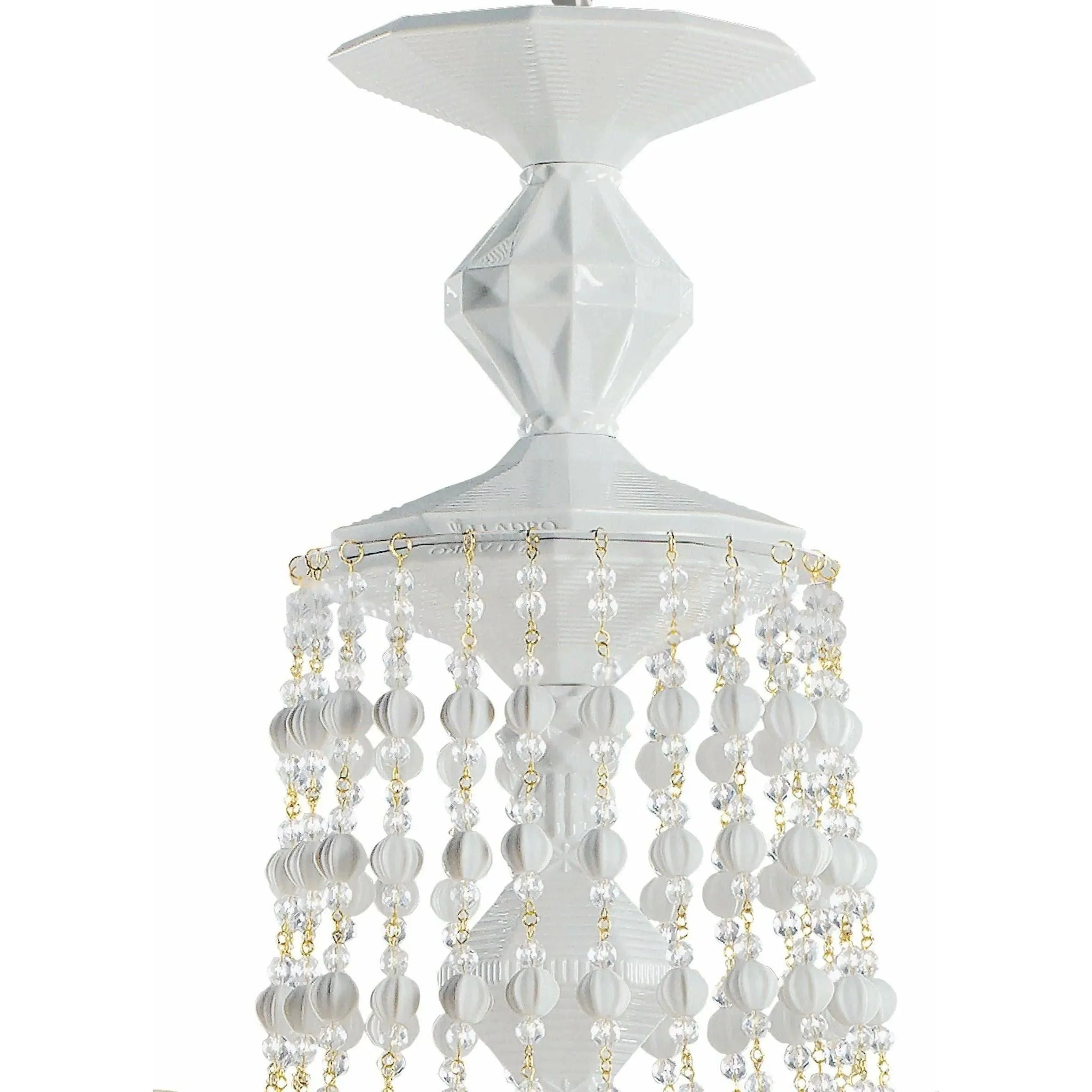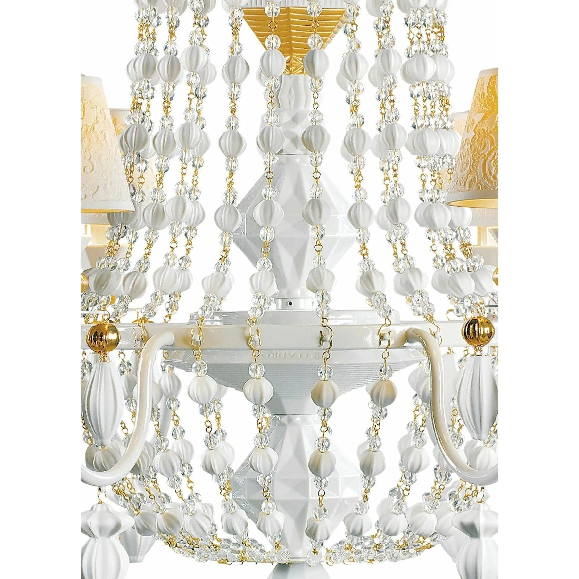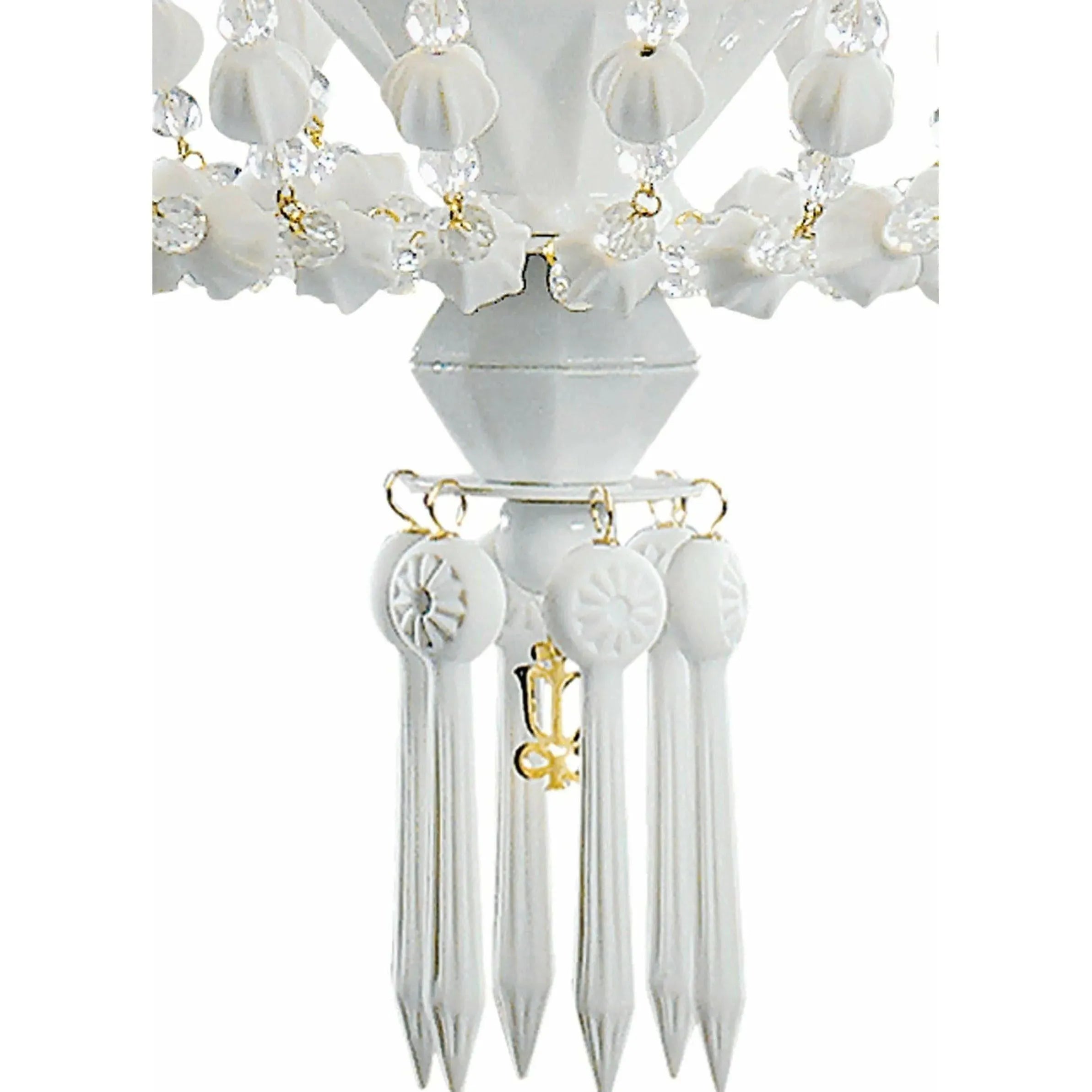 Handmade hanging ceiling lamp with white metal chandeliers and translucent porcelain tulips with six lights.
