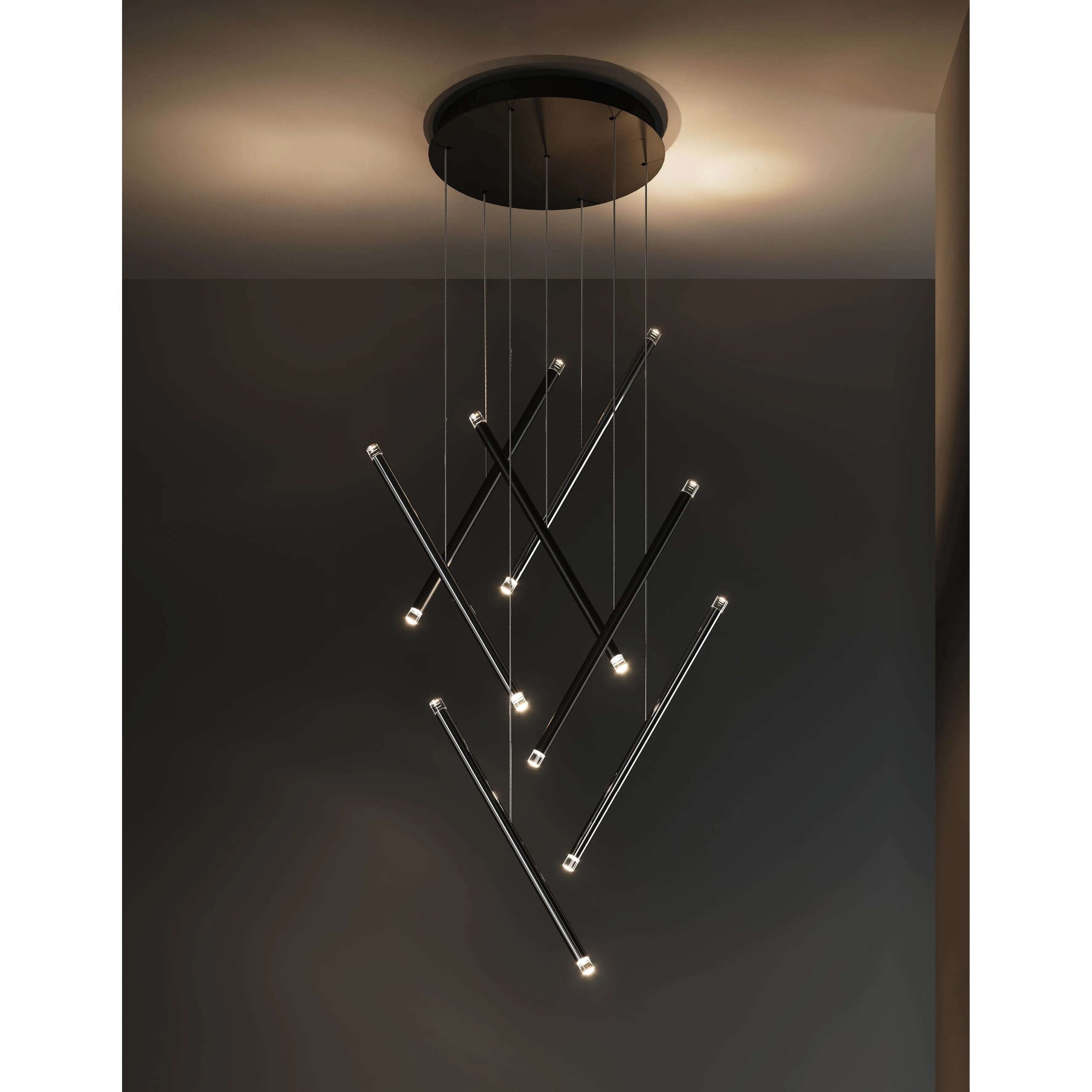 Precious pins suspended from a thin cable, like magic lights floating in the space. A–Tube Nano Duo is an offshoot of A–Tube Nano with an LED light source on both ends of its thin metal body. A lightweight and linear lamp available in six finishes, including the new Terra, which allows to create evocative and playful cluster compositions.