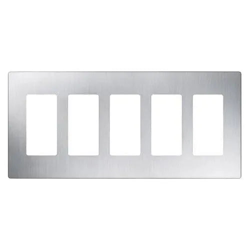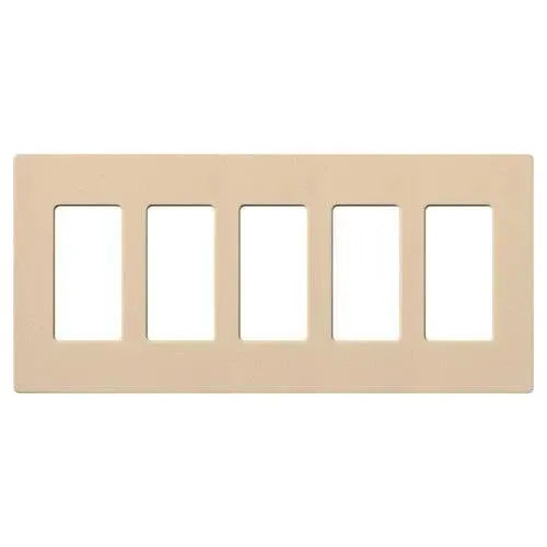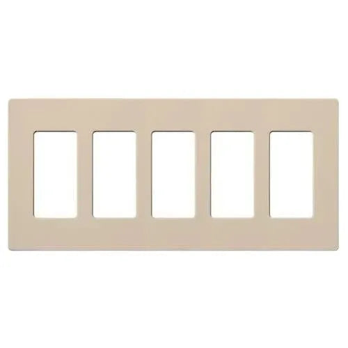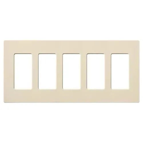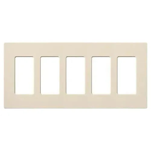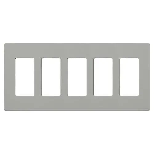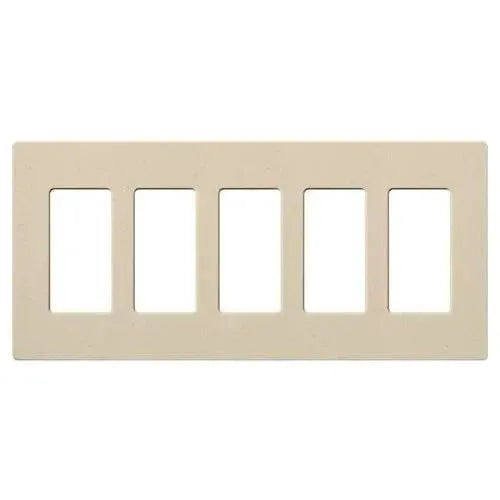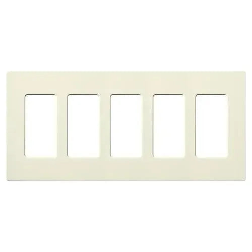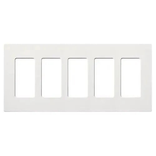 Crafted from durable plastic with a satin Claro finish, this 5-gang wallplate measures 10.18" W x 4.69" H x 0.30" D and snaps on over an alignment adapter for a flush, hardware-free look. It accommodates standard decorator/dim‑mer openings and coordinates with Lutron controls, making it an ideal choice for contemporary, transitional, and minimalist projects.