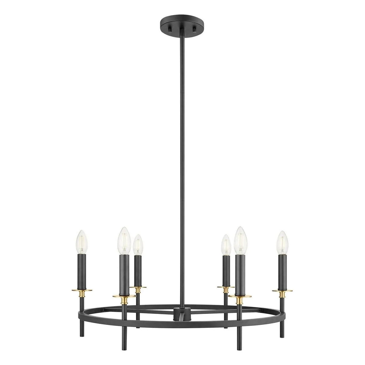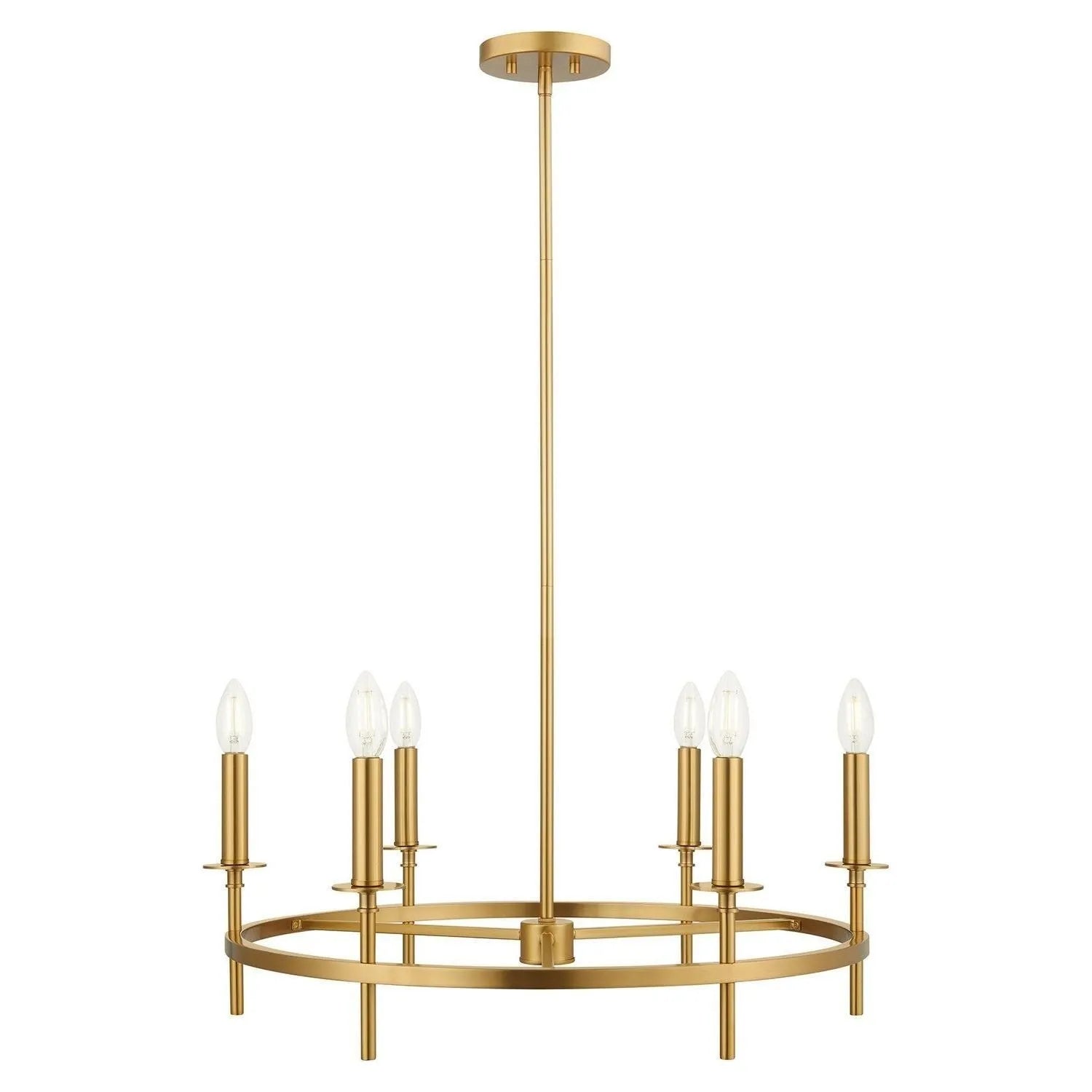Crafted in metal with precise detailing, this 6‑light fixture accepts E12 candelabra bulbs (up to 60W, not included) and is dimmable for layered, project‑ready illumination. At 25" diameter and 9" overall height, the low‑profile silhouette suits dining rooms, entryways, and open‑plan living spaces while included downrods allow adjustable hanging heights for bespoke installs.