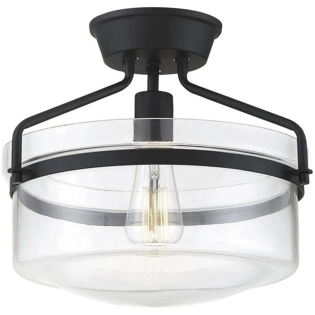 Clean, contemporary semi‑flush lighting designed for curated interiors. The Meridian One Light Semi Flush Mount from Meridian Lite Trends pairs a precise brushed‑nickel frame with a clear glass drum to showcase a single bulb and deliver direct, sculptural illumination—ideal for hallways, powder rooms, and compact living spaces.