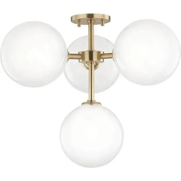 Ashleigh Semi Flush Mount — a considered fusion of geometry and soft light from Mitzi, designed for elevated interiors. The three opal glass globes articulate around a crisp central stem, creating a sculptural yet restrained silhouette that anchors modern, transitional, and minimalist schemes.