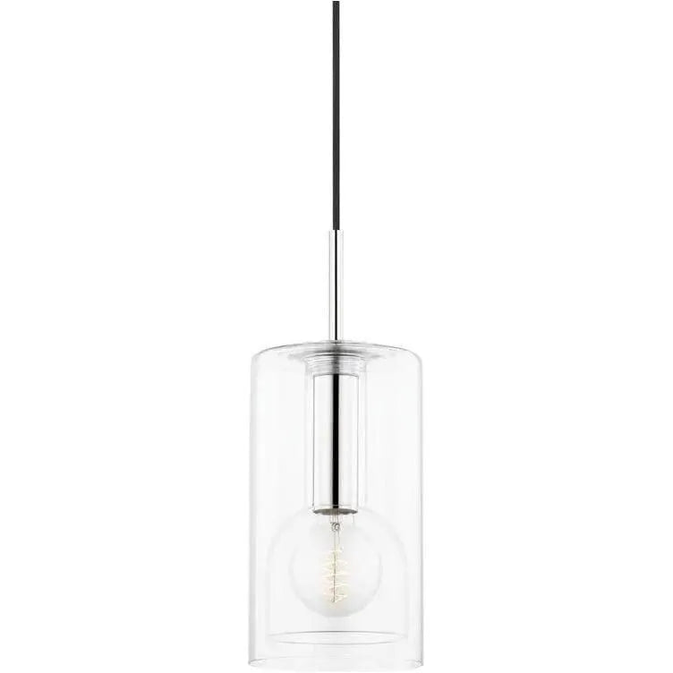 Style is clearly on display in this shade-within-a-shade design. A clear-glass bulb hangs from a sleek glass shade and is then surrounded by another glass cloche shade. With both shades and the bulb made of clear glass, this fixture is a bright addition to any space. Both the wall sconce and pendant come in a long tubular or shorter, more rounded style. Arm and backplate available in Aged Brass, Old Bronze or Polished Nickel.