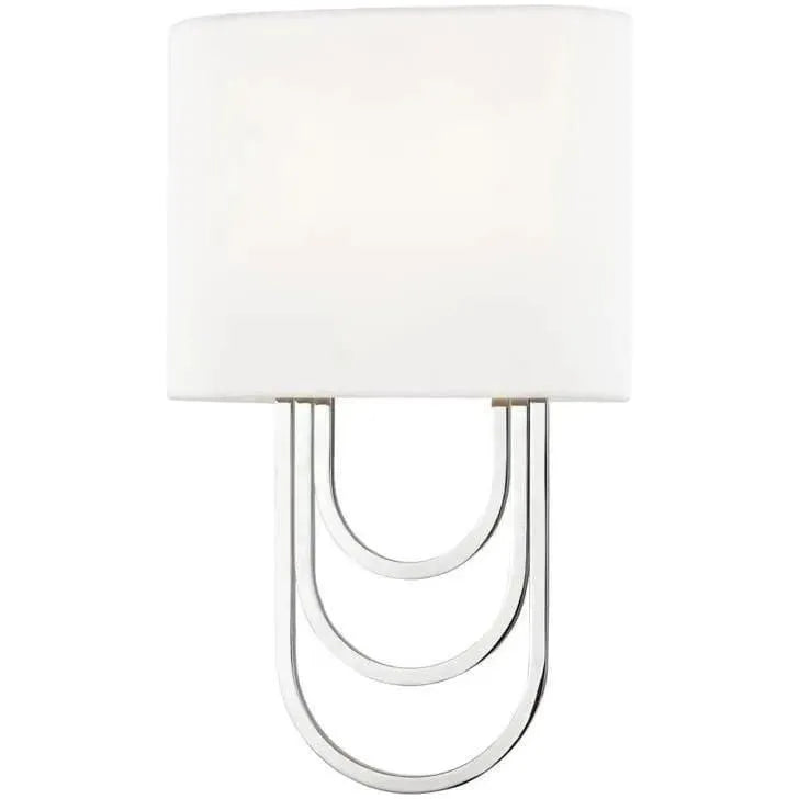 Farah Wall Sconce by Mitzi — a sculptural approach to designer lighting that pairs a soft, rectangular fabric shade with three nested, polished metal arcs. The result is a refined focal point that balances ambient glow and architectural form for elevated interiors.