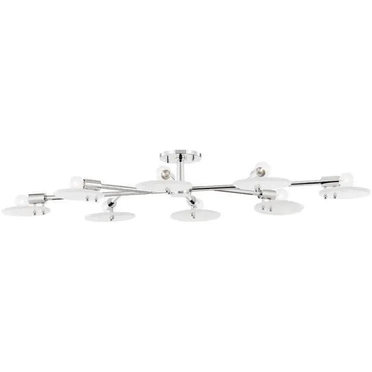 Light shines from behind shades made of white candy glass in this sweet fixture. The disc-shaped shades sprout from metal arms, giving the 4-light sconce and 8-light flush mount a sprawling, sophisticated feel. Available in Aged Brass, Polished Nickel or Old Bronze.