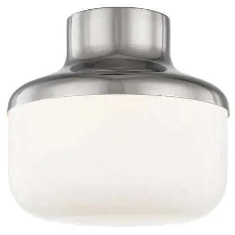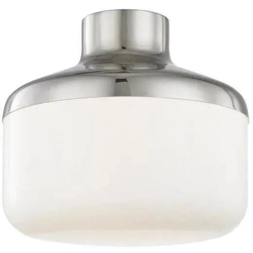 Livvy Flush Mount by Mitzi presents a refined study in proportion and finish — an elegant ceiling fixture that balances sculptural form with practical illumination. The compact, low-profile silhouette features a gentle opal glass diffuser capped by a warm metallic top, producing even, glare-free light that flatters residential and commercial interiors alike.