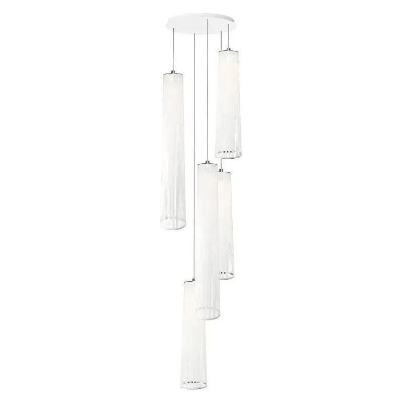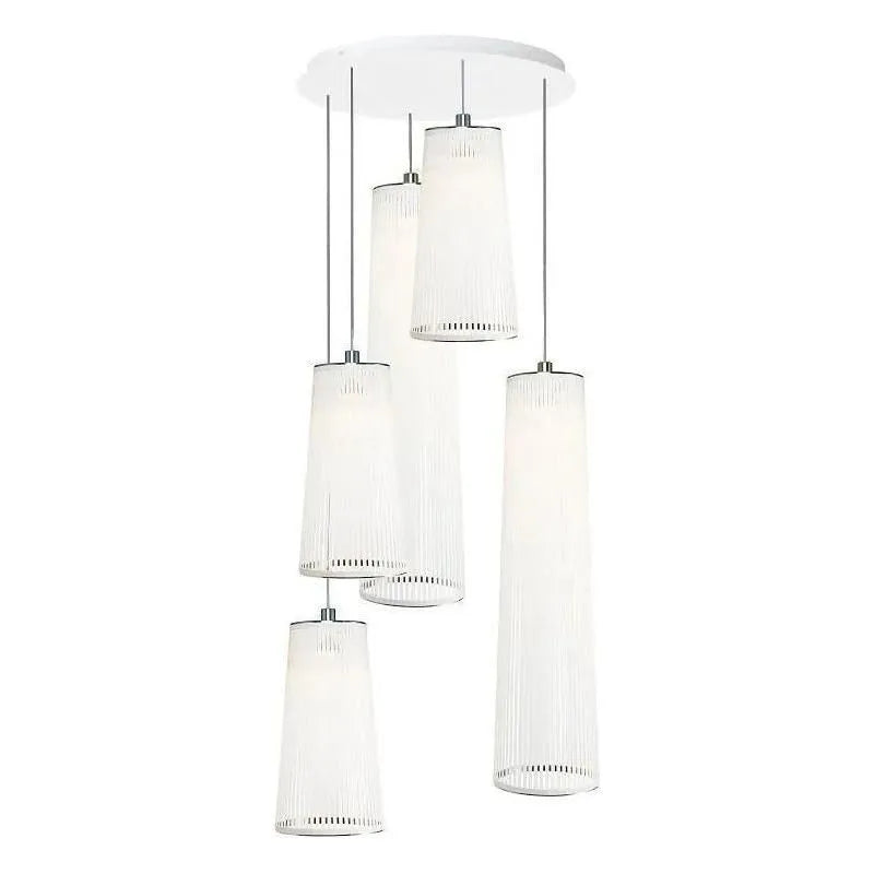 SOLIS chandelier is an innovatively simple and elegant grouping of suspension luminaires that create a distinctive ambiance in configurations of 3 or 5 lamps. The resulting piece is an engaging blend of light and shadows, casting shimmering rays and radiating patterns onto a space.