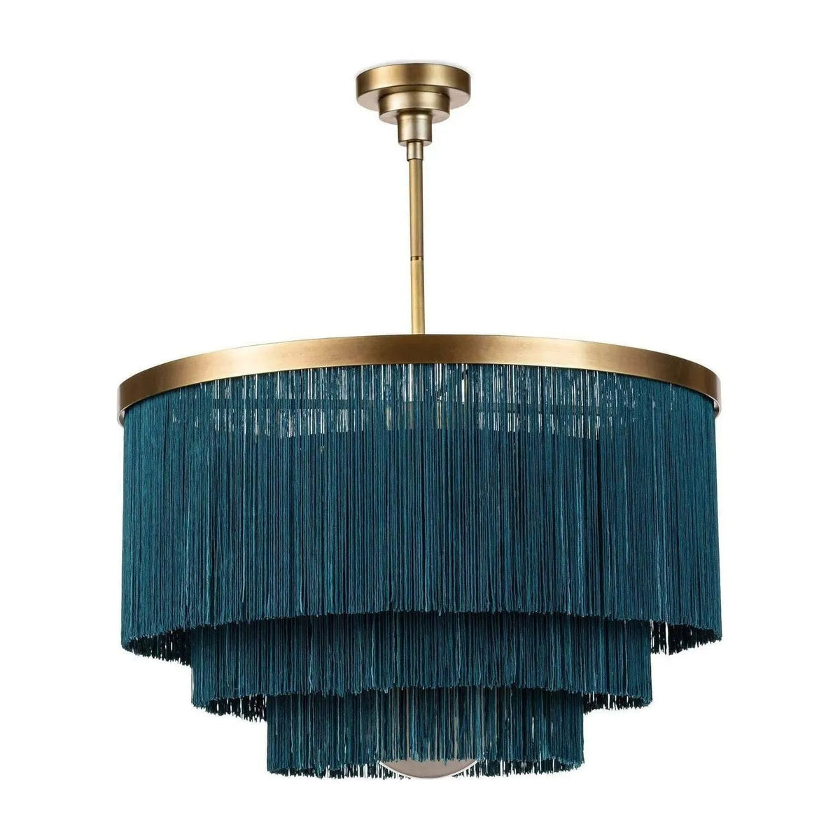 Oh l? l?, just add fringe! Cabaret chandelier fancies up any living room or bedroom for an accent you just can't take your eyes off of. Three layers of fringe make for great movement and add dimension to the piece. Natural brass accents along with an opal glass dome add distinctive design details making this a statement chandelier.