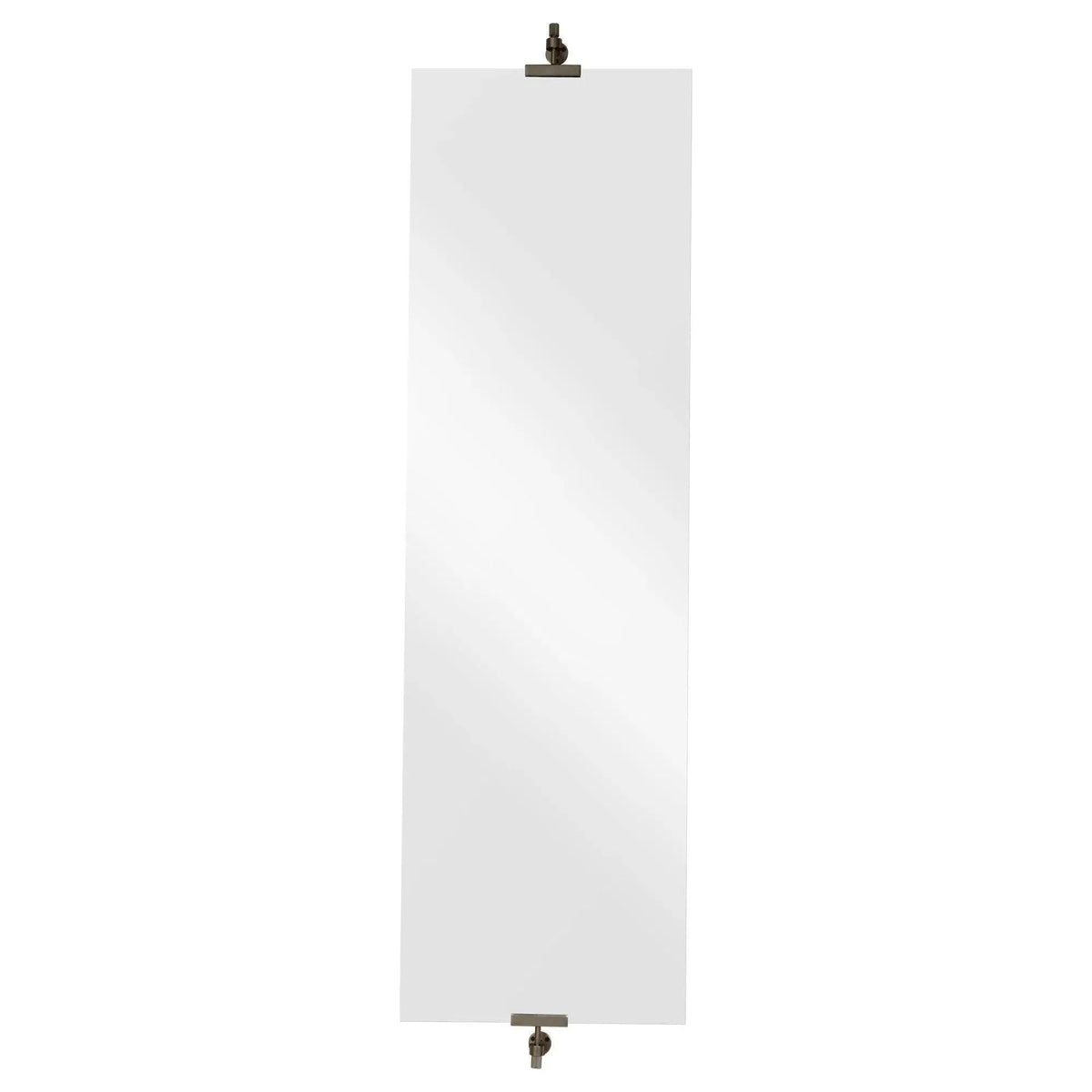 This all glass full-length leaner mirror finds inspiration in the industrial details of the Arts and Crafts movement. Metal clip hardware at the top and bottom of the rectangular looking glass secure the mirror in place, adding architectural appeal as it hangs vertically on bedroom and bathroom walls. With a mounting style reminiscent of an artist’s easel, every reflection becomes the subject of the canvas.