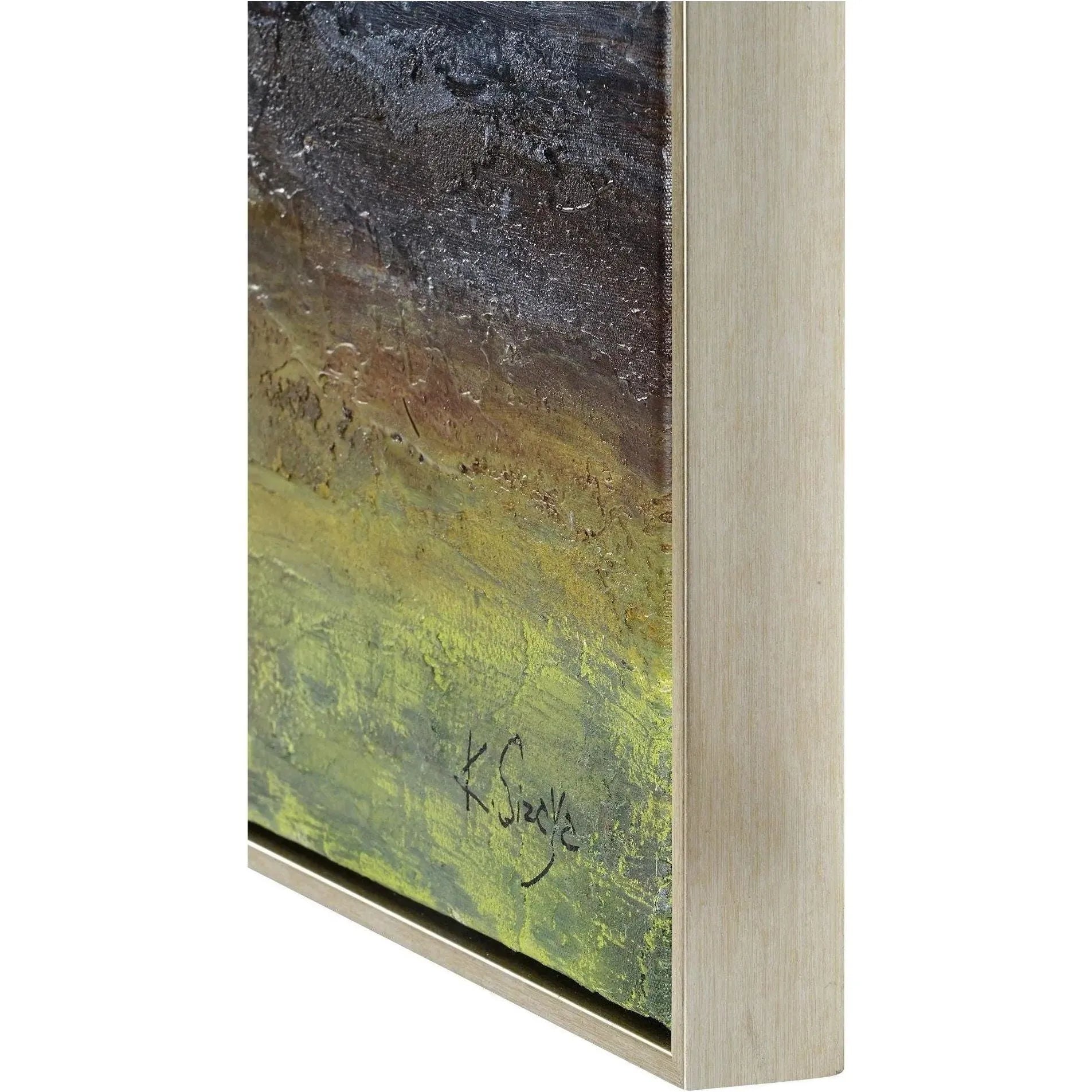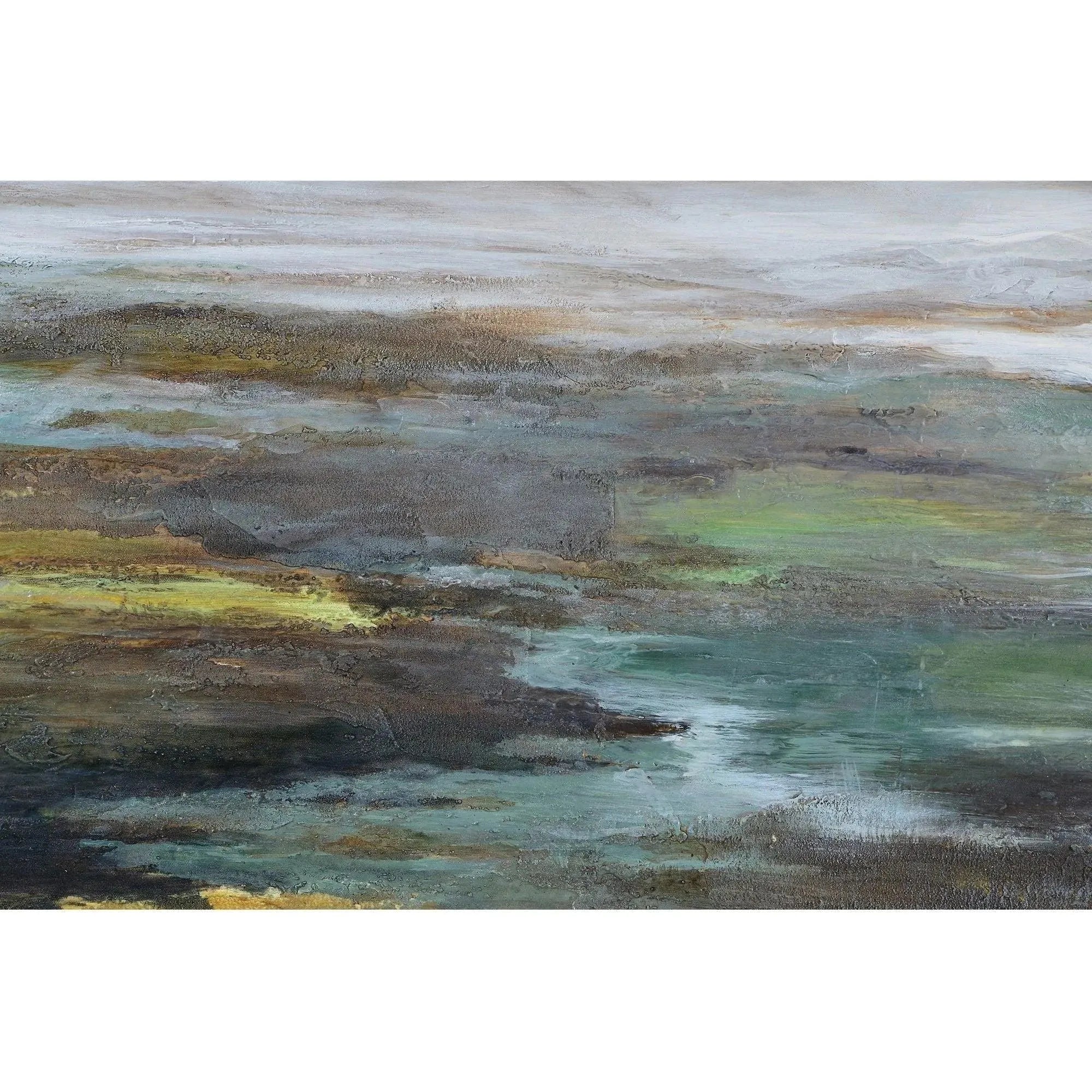 The vibrant quality of rolling hills and waterways is captured in this framed oil painting. The textures along the cotton canvas only serve to enhance the natural quality of the art’s details. Placed in the rustic chic bedroom, it serves as a focal point for which to set the room against.
