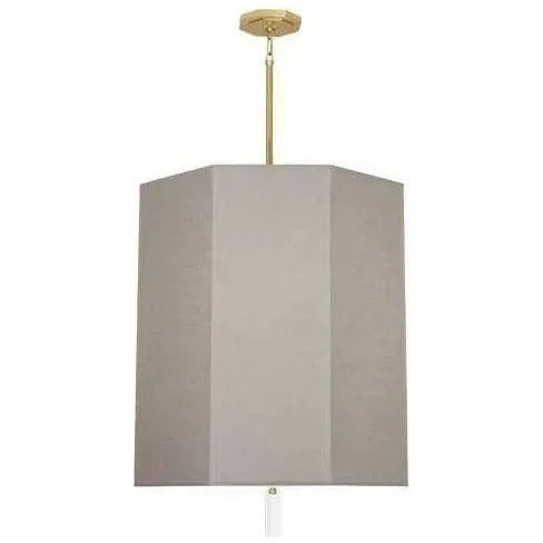 Kate Pendant by Robert Abbey — a refined study in form and finish that elevates contemporary interiors. Its soft, faceted white shade creates a quiet, sculptural presence while a slender brass stem and canopy introduce warm metallic contrast, making it an instant focal point in entryways, dining areas, or boutique hospitality settings.