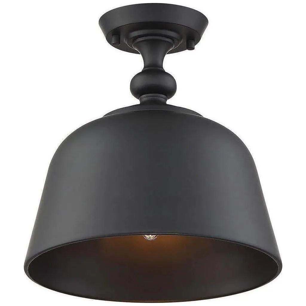From Savoy House, this Berg 1-light ceiling semi-flush mount is a perfect blend of industrial style and traditional allure. It showcases an oversized metal shade that is finished in polished nickel, both inside and out, for a bright and focused glow. Above the shade, hardware details recall the curves of an elegant candlestick. Berg is perfect for times when you would like a more directed beam of light, such as in a small entryway or a kitchen. This fixture is 12" in width and 12" in height. Uses one standard size light bulb of up to 60 watts (not included).