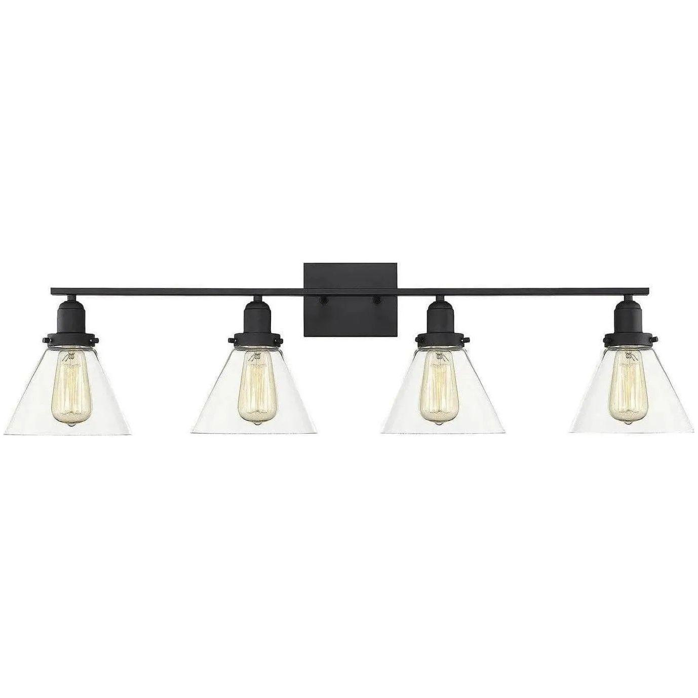 This Savoy House Drake 4-light bath bar has an alluringly simple style with a few choice hardware details and shades of clear glass. It may be mounted as either uplight or downlight. Bath bar lights are a classic choice for illuminating vanity mirrors in bathrooms big and small. Because the bulbs are exposed, try using stylized bulbs (not included) such as Edison for a different look! The polished nickel finish can be paired with nickel hardware or mixed with hardware in other fixtures. Add Drake to industrial, transitional or contemporary rooms for a bold look. When you choose a Savoy House lighting fixture, you can be certain you've selected a piece that will withstand the test of time.
