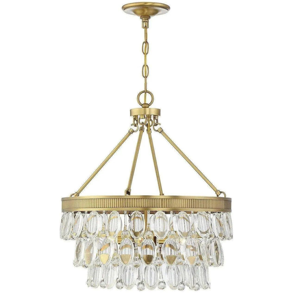 The Windham is a glamorous, modern pendant that brings a touch of luxury and elegance to your home. The wide, textured hoop of the frame, downrods, and disc-shaped canopy have a sumptuous, chrome-like, polished nickel finish. This circular frame holds three descending tiers of gorgeous clear crystals. The alternating oval and teardrop shapes of the crystals add wonderful texture and sparkle. Four 60W, C-style bulbs within, provide beautiful illumination —overall a stunning choice for your glam, contemporary, or transitional decor style. The pendant is 20" wide and 22" high: a perfect fit for your dining area, living room, foyer, great room, bedroom, stairway, kitchen, or family room.