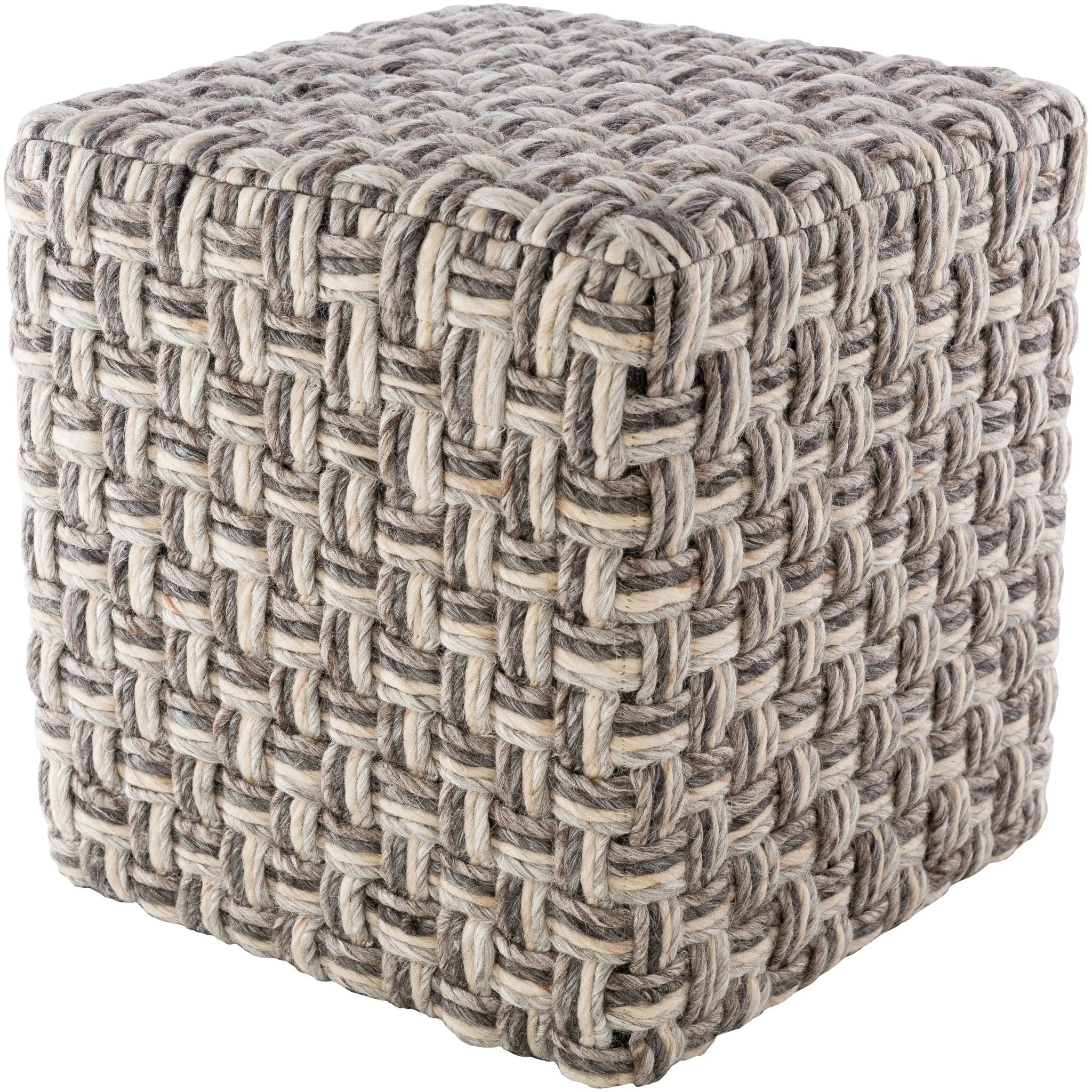The Cordoba Pouf is the perfect addition to any modern living space. This stylish pouf is crafted with a blend of Polystyrene Block, Wool, and Polyester and hand woven in India for an eye-catching design. It's lightweight construction makes it easy to move around your home and spot clean only care keeps maintenance simple. Create a unique look and feel in any room with this beautiful pouf.