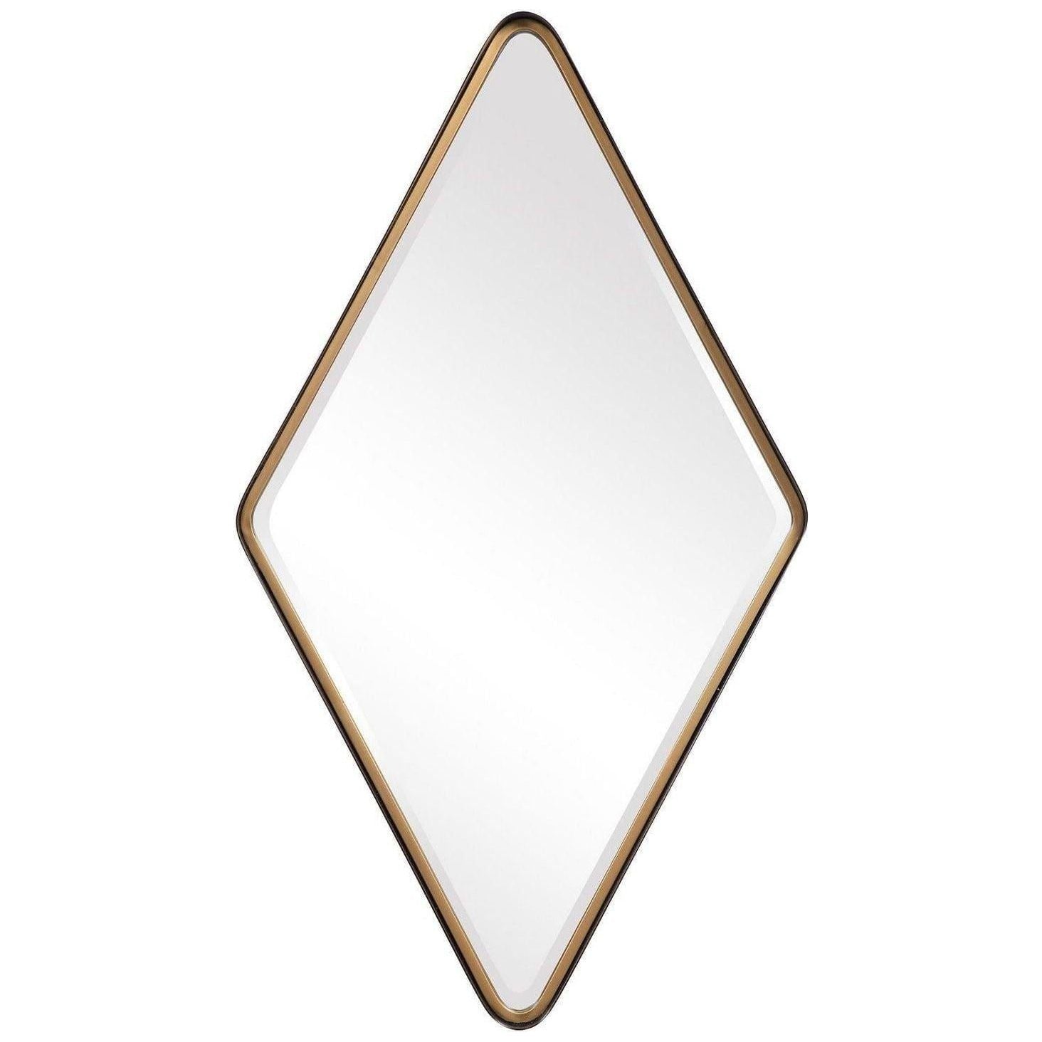 Showcasing A Unique Diamond Shape, This Mirror Is Constructed From A Thick Iron Band Finished In Matte Black With A Gold Inner Liner. The Piece Has A 1" Bevel And May Be Hung Horizontal Or Vertical.