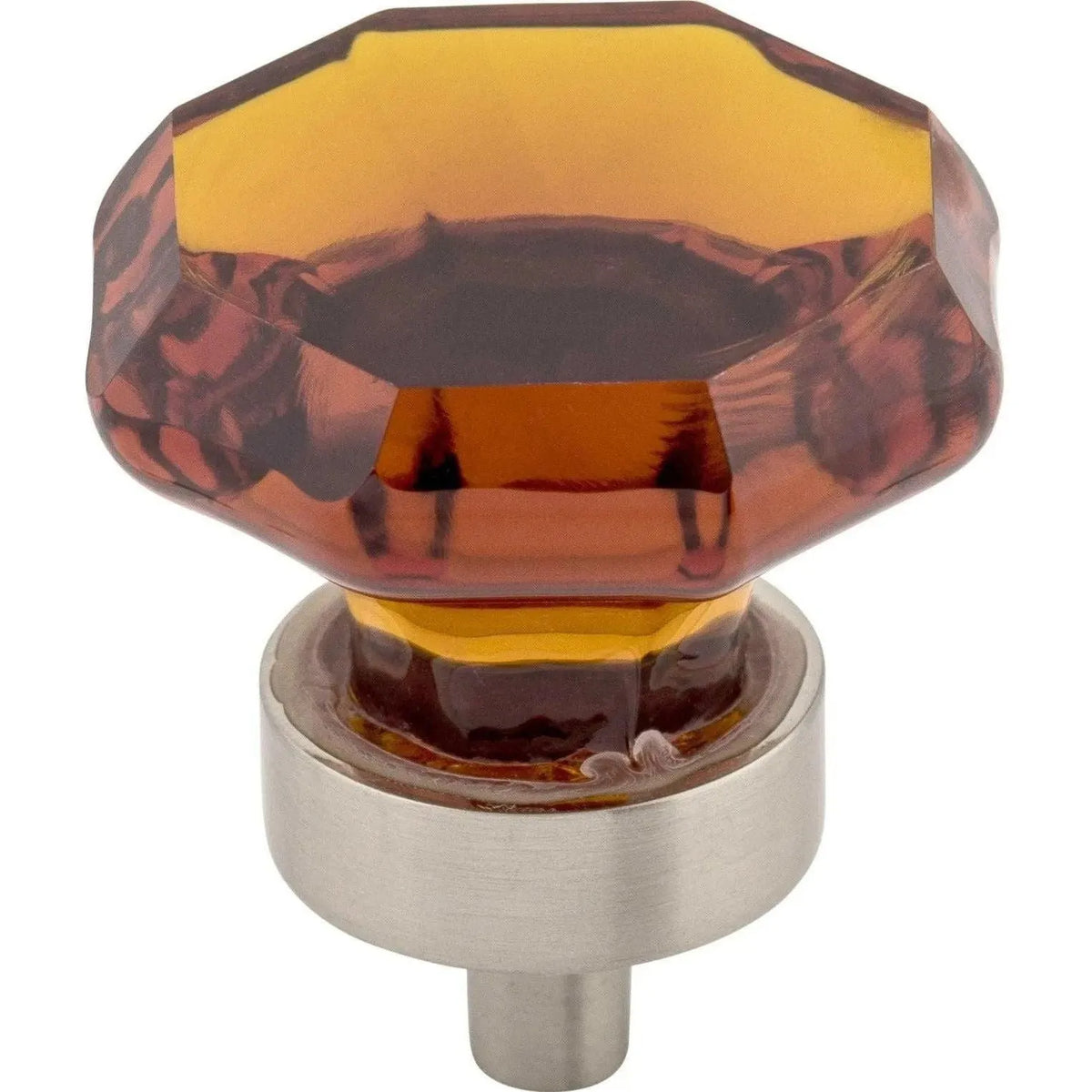 Wine Octagon Crystal Knob — a faceted, octagonal crystal knob designed to introduce refined warmth and tactile presence to cabinetry and millwork. The deep amber "wine" crystal catches light with geometric clarity, balanced by a low-profile brushed metal base for a contemporary, tailored silhouette.