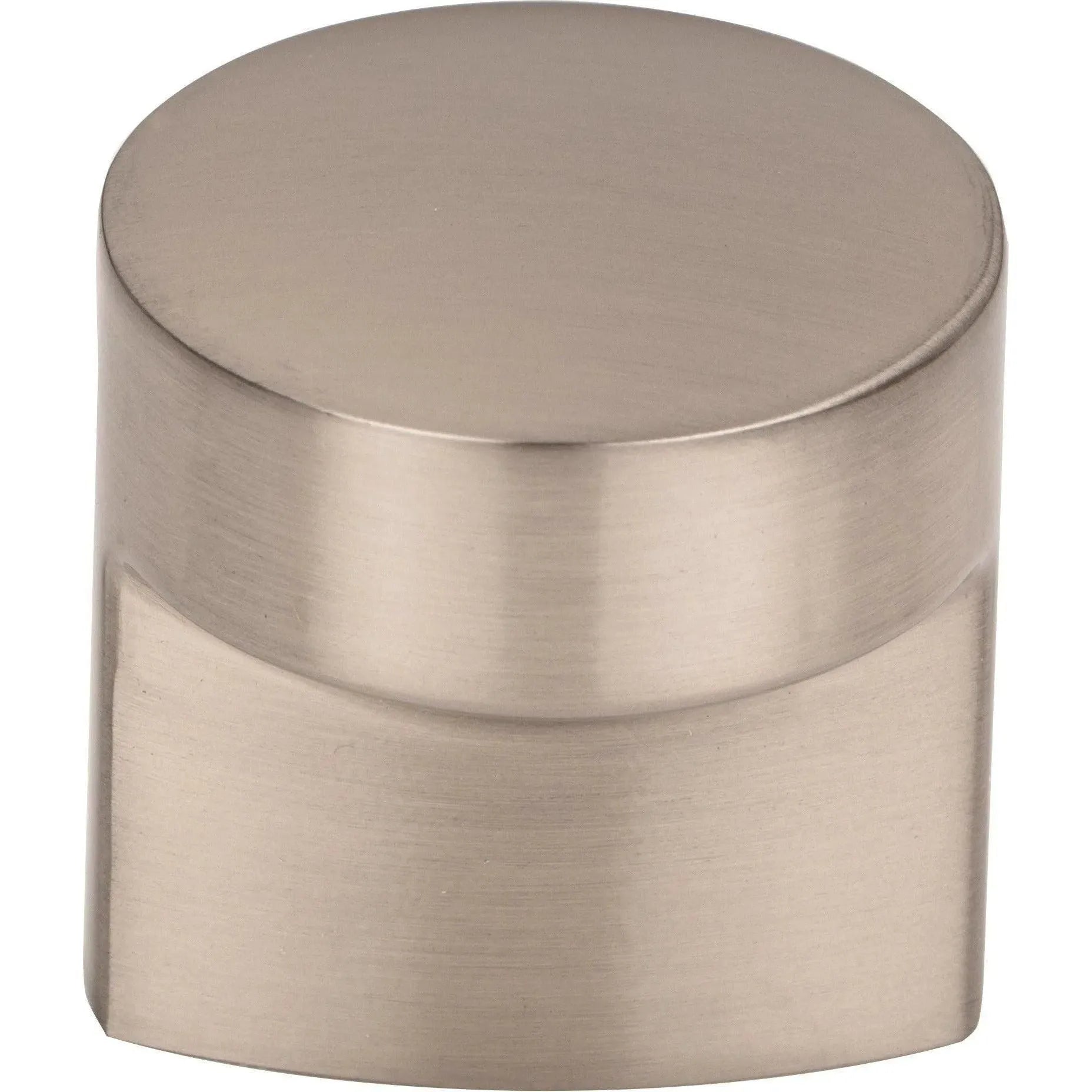 Hartridge Knob from Top Knobs is a study in minimalist form and refined finish — a compact, cylindrical knob with a subtly softened top and clean, squared base that anchors contemporary kitchens and cabinetry. Crafted for tactile comfort, its smooth, matte surface reads as modern hardware while delivering the durability designers expect.