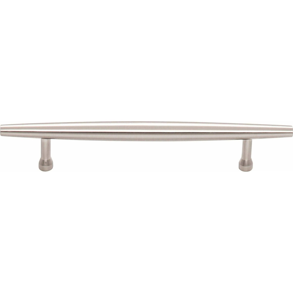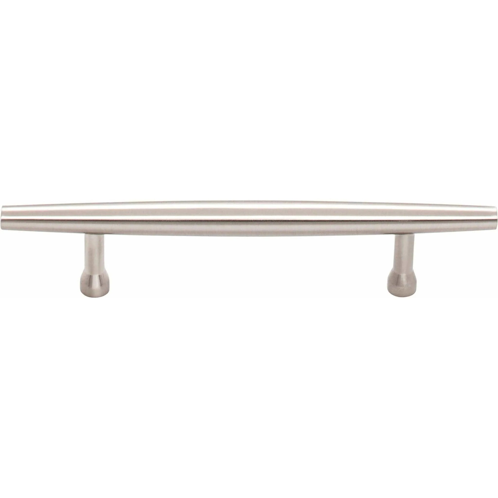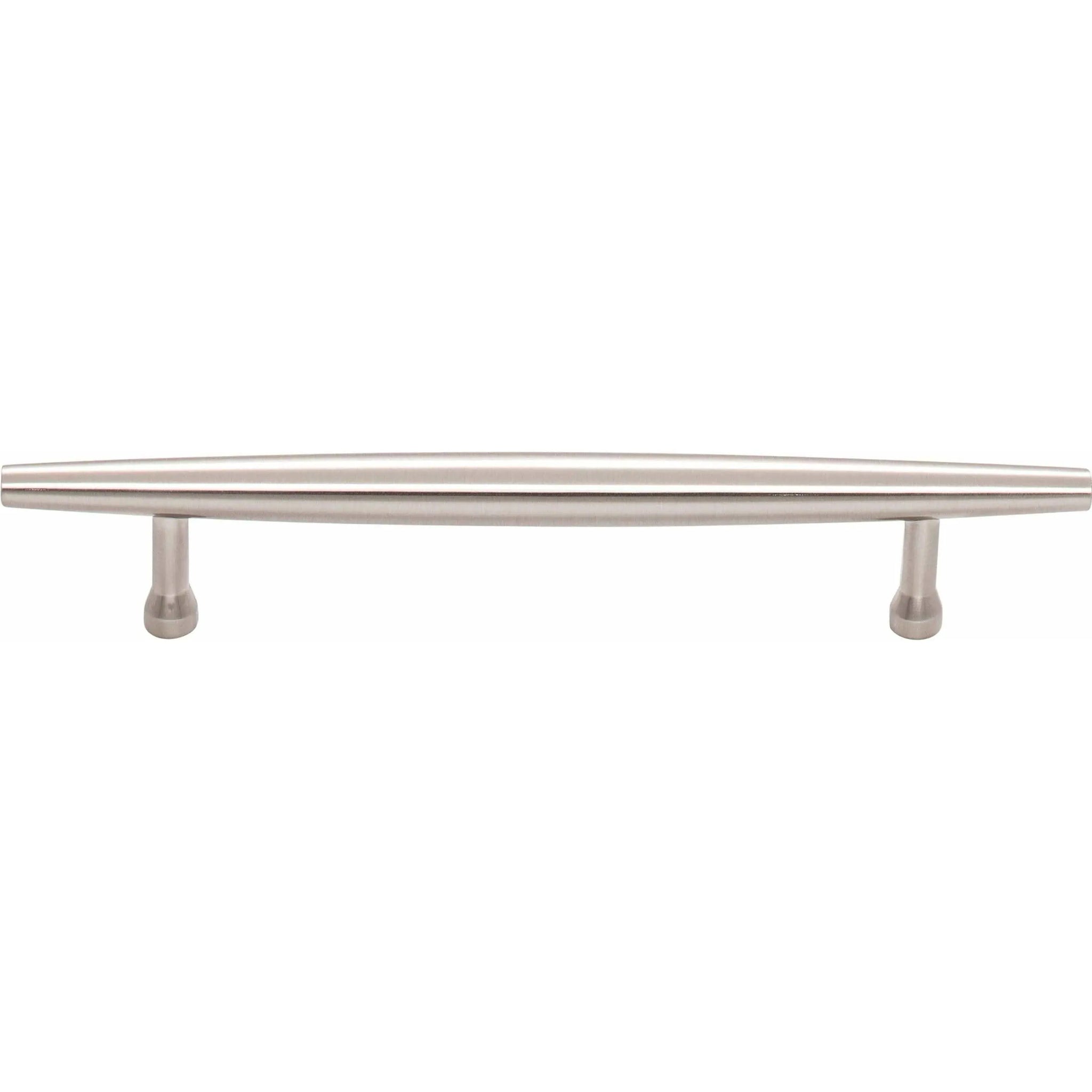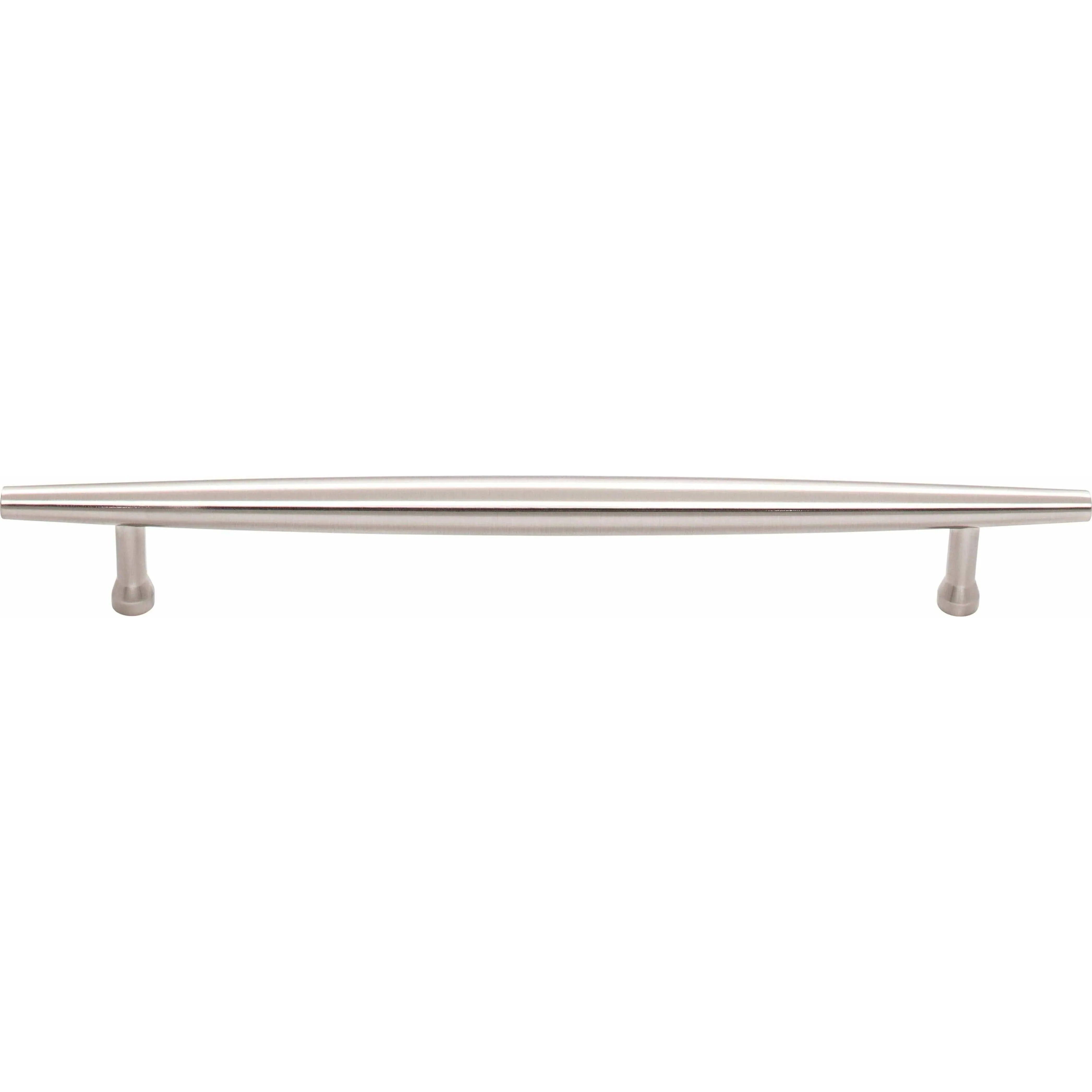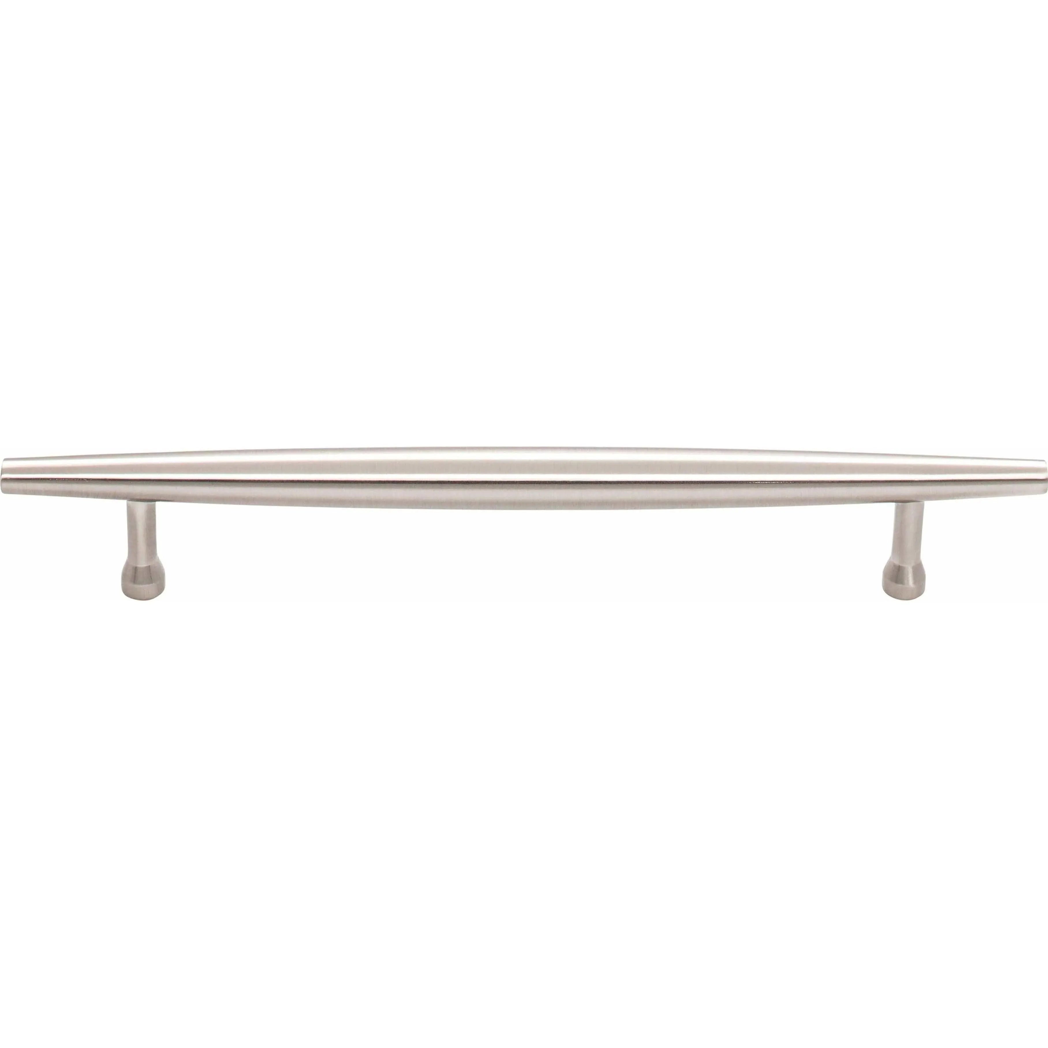 Crafted from solid metal with a satin, brushed finish, the Allendale Pull demonstrates precise fabrication and understated luxury. Narrow cylindrical posts with flared feet provide stable support and a comfortable grip, making it ideal for drawers and cabinet doors where refined proportion matters.