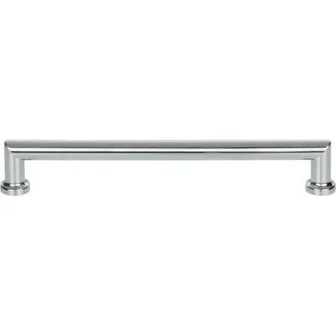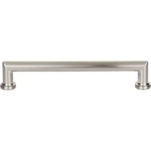 Top Knobs Morris Pull refines transitional design into a clean, architectural statement. Its straight tubular bar and defined round bases create a balanced silhouette that reads modern yet comfortably familiar—ideal for curated kitchens, bathrooms, and furniture.
