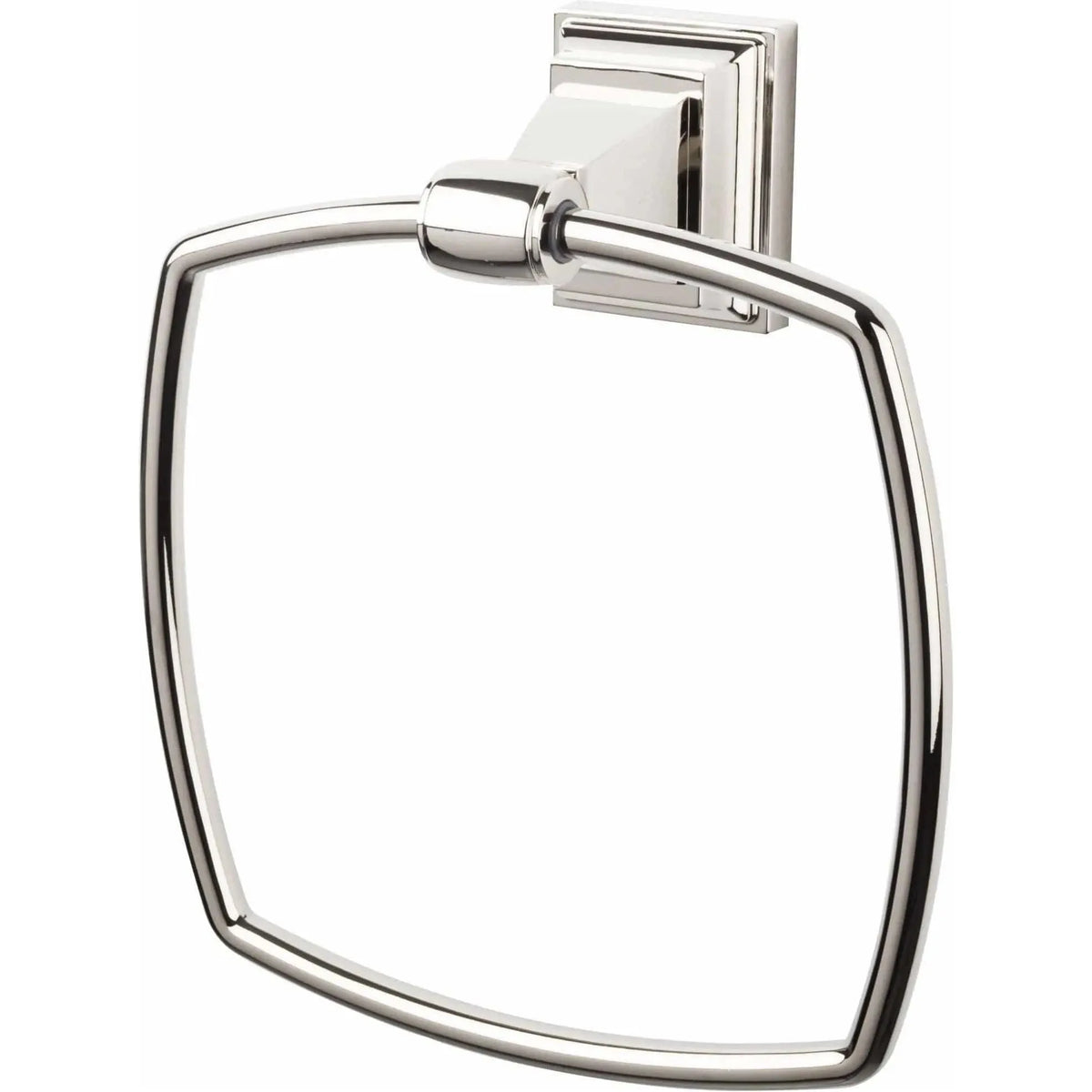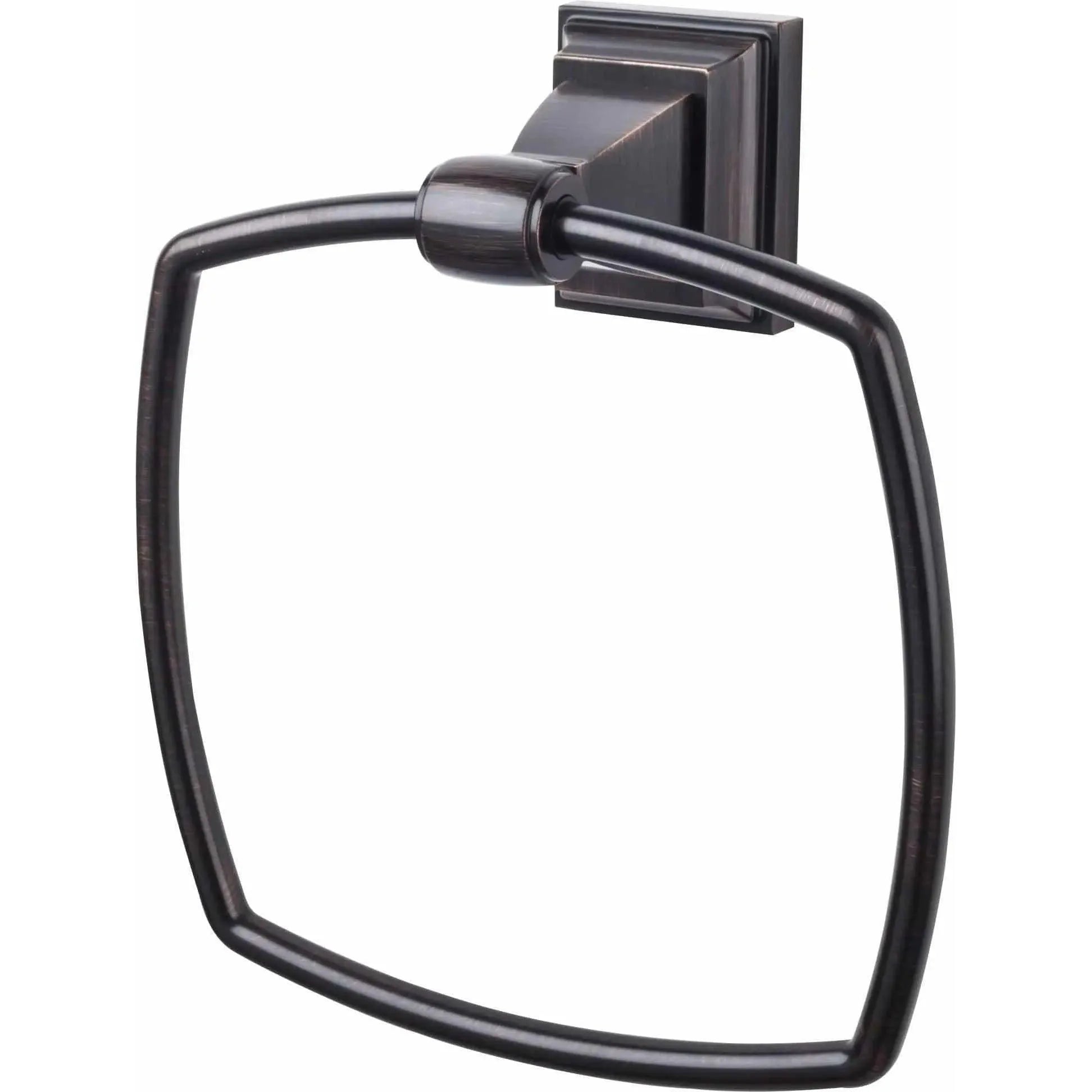Stratton Bath Ring from Top Knobs pairs crisp architectural form with a subtly aged metal finish for a refined, utilitarian presence in the bath. The squared, stepped backplate and gently irregular ring read as handcrafted details that anchor contemporary and transitional interiors alike.